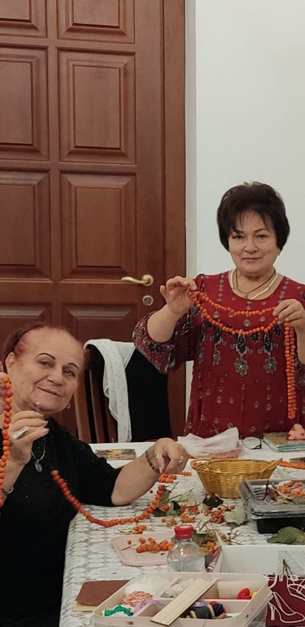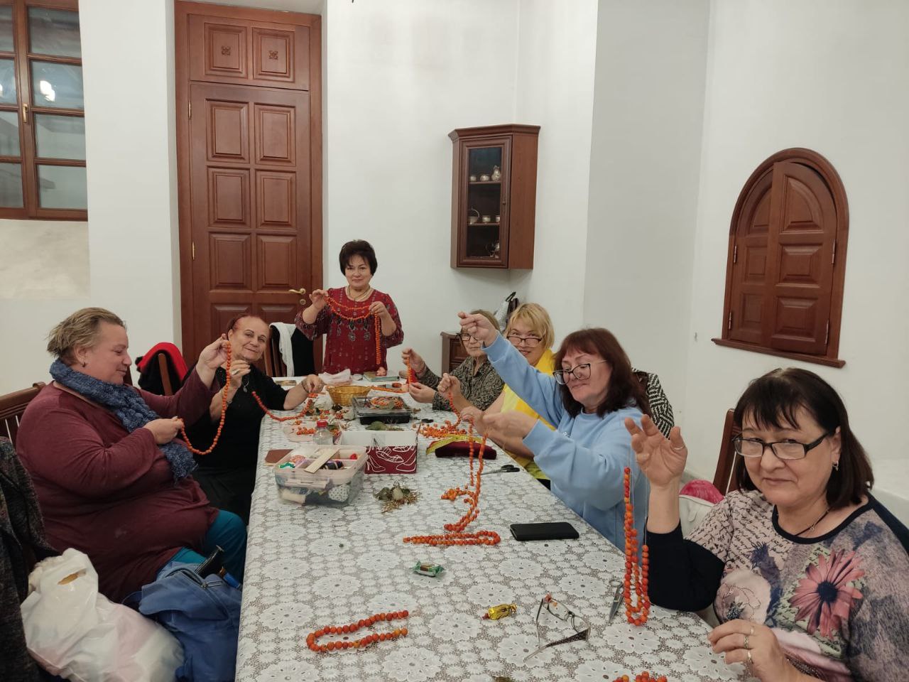 Специально в дар нашим дорогим пенсионерам мастерицы приходского центра "Дар Божий" изготовили рябиновые бусы.