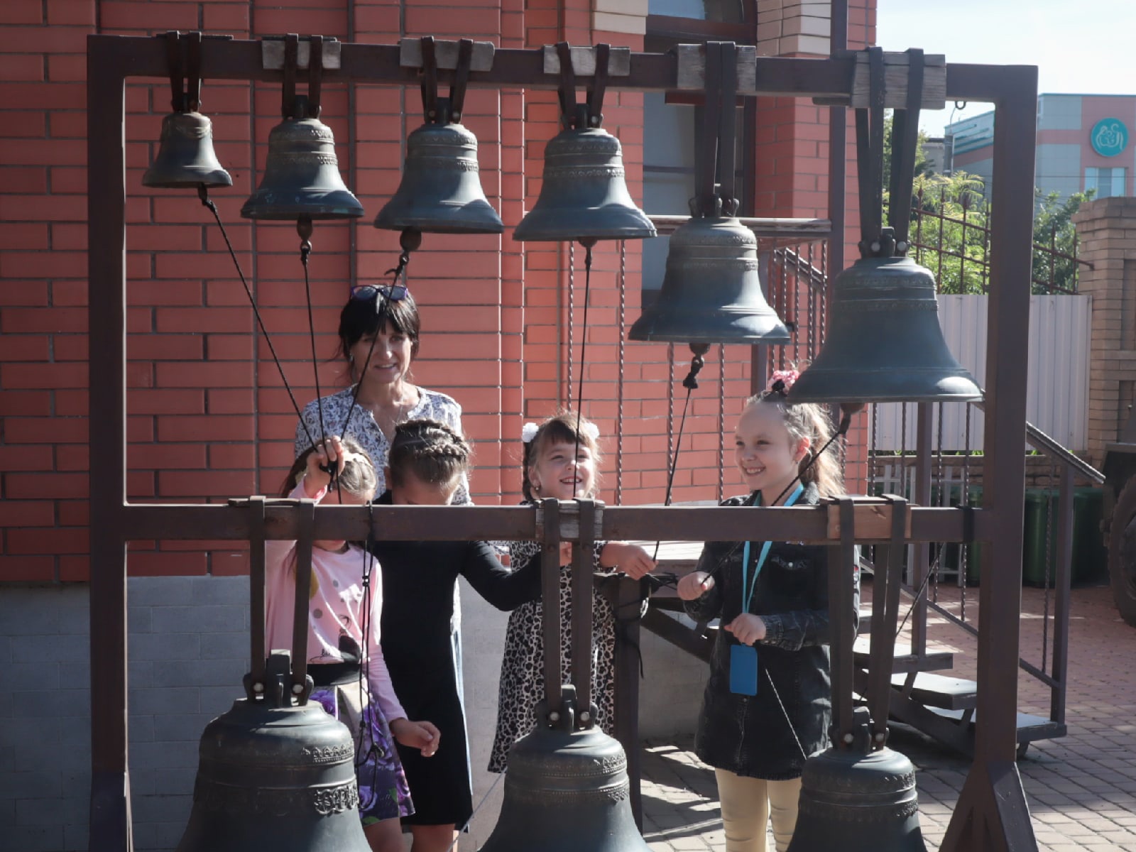 А после состоялось знакомство с нашим приходом. Старшая сестра Ольга Терехова показала наши храмы, познакомила с историей прихода и его святынями. По традиции, в конце экскурсии все желающие позвонили в колокола.