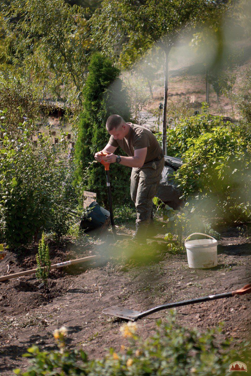 Большую поддержку приходским озеленителям оказывают военнослужащие срочной службы, которые приезжают знакомиться с главным храмом Южного военного округа и помогают в его благоустройстве.