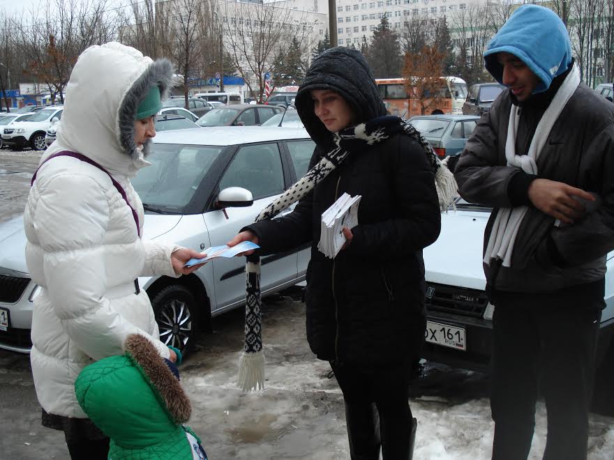11 января 2015 года ребята из молодежного клуба "Благо-Дать" совместно с сестричеством прихода участвовали в раздаче листовок "Против абортов", посвященной дню памяти 14 тысяч святых Мучеников-младенцев Вифлеемских.