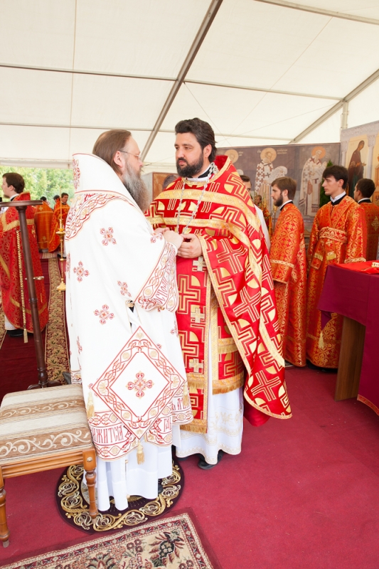 Его Высокопреосвященству сослужили благочинный приходов Западного округа, секретарь митрополита Ростовского и Новочеркасского по г. Ростову-на-Дону протоиерей Иоанн Осяк, настоятель храма святого Иоанна Воина протоирей Валерий Волощук, клирик храма святого Иоанна Воина протоиерей Валентин Ермилов, благочинный приходов Центрального округа протоиерей Геннадий Макаренко, секретарь Ростовского епархиального управления иеромонах Артемий (Кузьмин), председатель Комиссии по канонизации святых Донской митрополии протоиерей Владимир Тер-Аракельянц, благочинный приходов Таганрогского округа протоиерей Алексий Лысиков, благочинный приходов Северного округа протоиерей Александр Пятницкий, наместник Свято-Донского Старочеркасского мужского монастыря игумен Макарий (Зеленков), клирики Ростовской-на-Дону епархии.