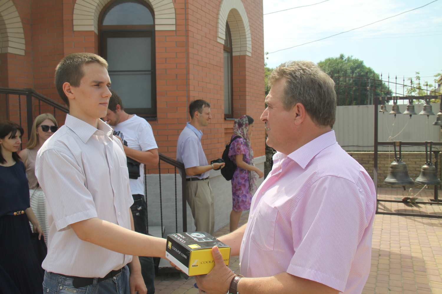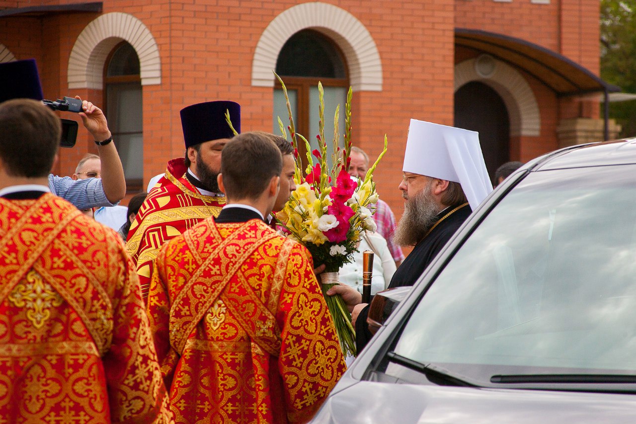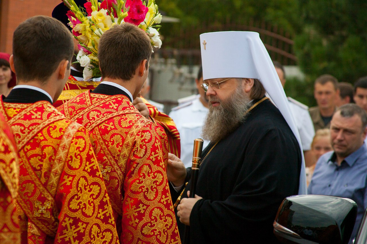 Затем к Главе Донской митрополии обратился настоятель храма протоиерей Валерий Волощук, поблагодарив Его Высокопреосвященство за совершение праздничного богослужения в престольный праздник. На молитвенную память настоятель прихода вручил владыке митрополиту Образ Спасителя в старинном окладе.