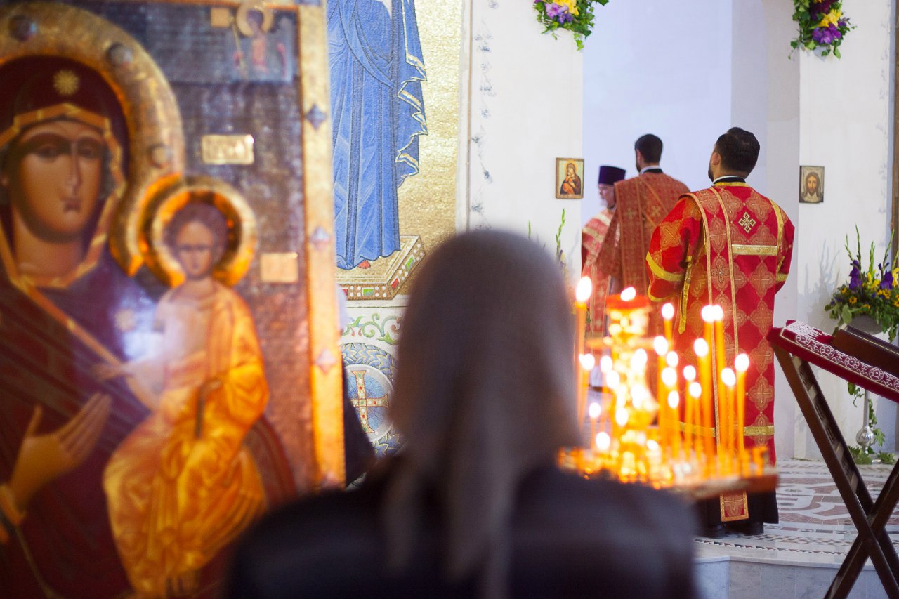 По окончании Литургии владыка митрополит совершил молебен перед иконой св. Иоанна Воина в криптовом храме в честь Сорока Севастийских мучеников.