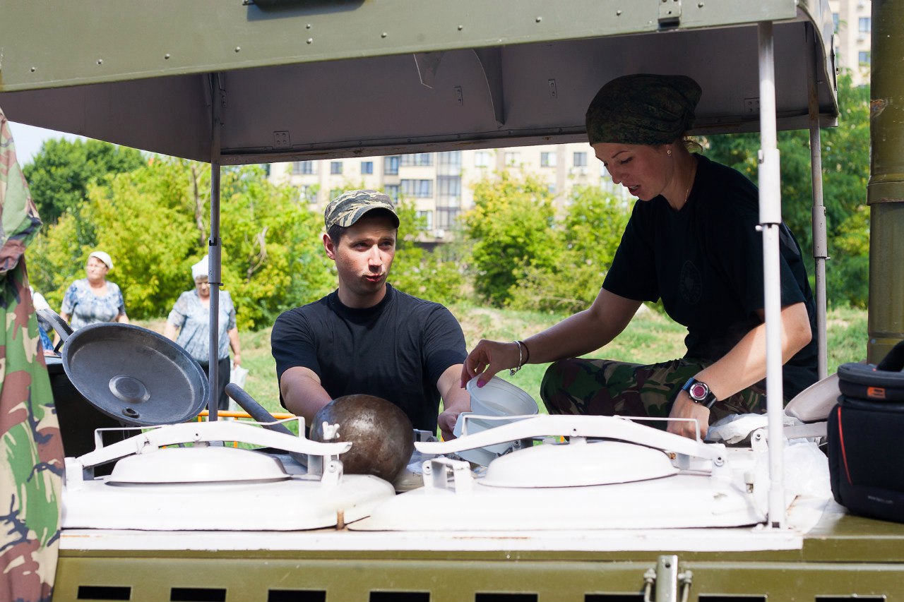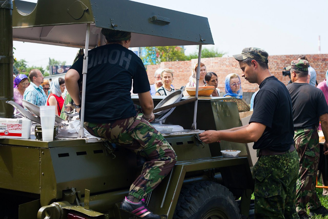 Наши давние друзья сотрудники ОМОН города Ростова-на-Дону угостили всех собравшихся вкусной солдатской кашей из полевой кухни.