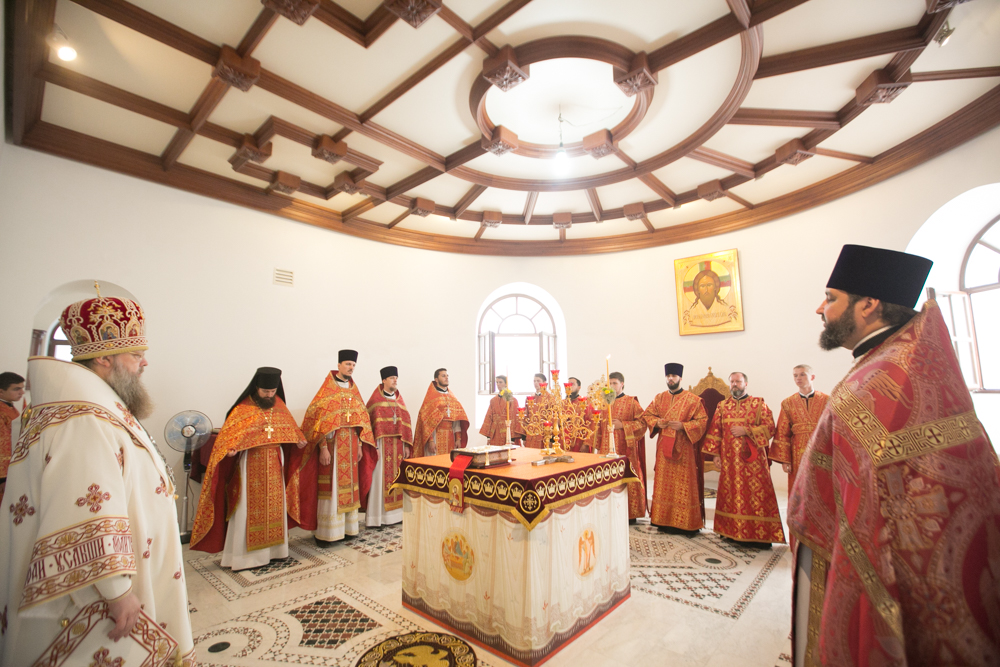 По окончании Литургии владыка митрополит и духовенство епархии совершили молебное пение перед иконой святого мученика Иоанна Воина.