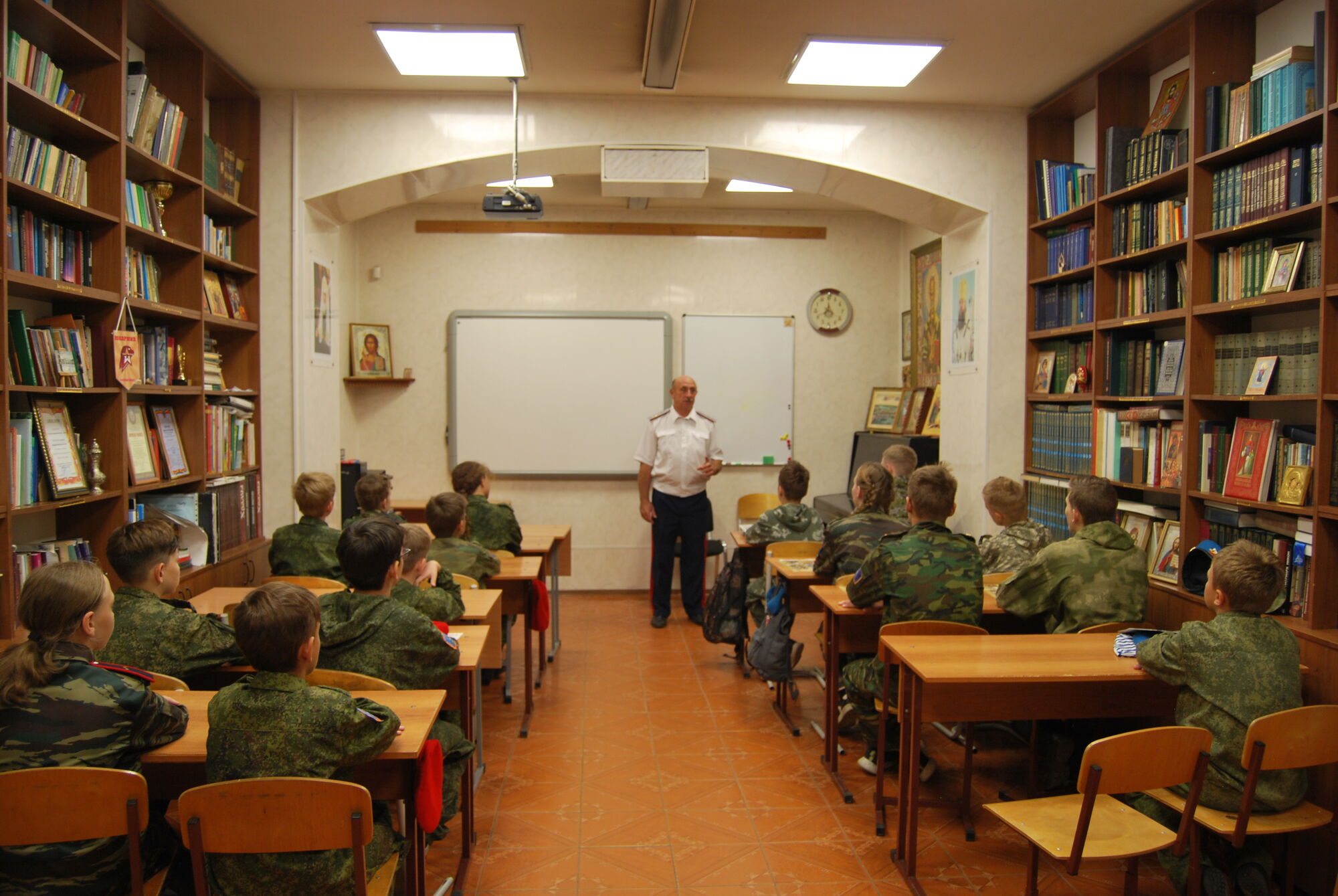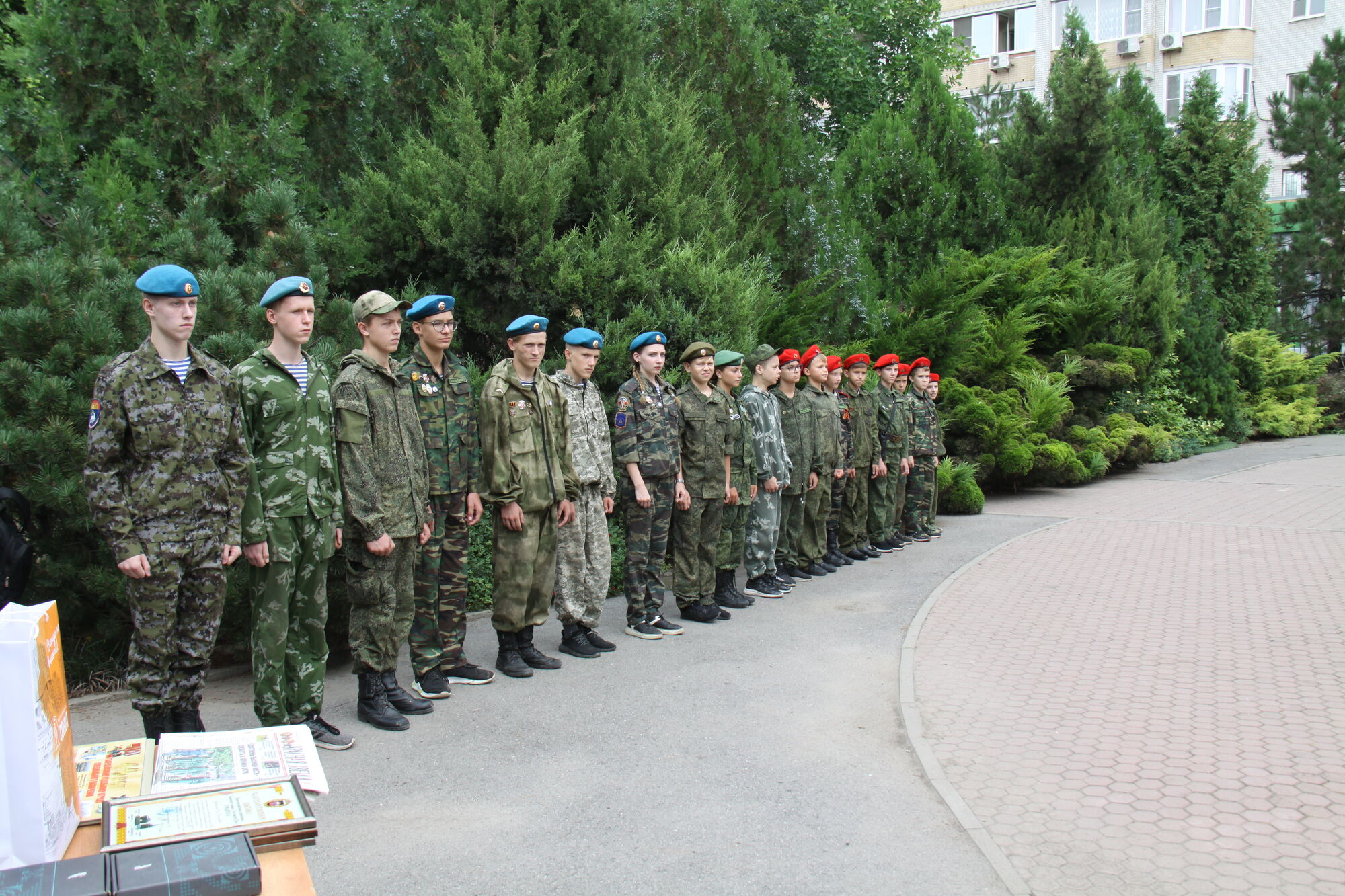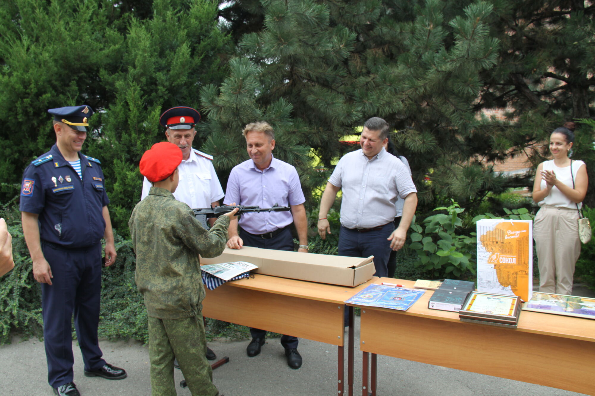 Для формирования учебно-тренировочной базы нам были подарены макеты учебного оружия и видеоаппаратура. Некоторым юным защитникам Отечества, зачисленным в группу тактических показательных выступлений, от лица командования подшефной воинской части были вручены десантные береты и тельняшки, а также благодарственные письма.