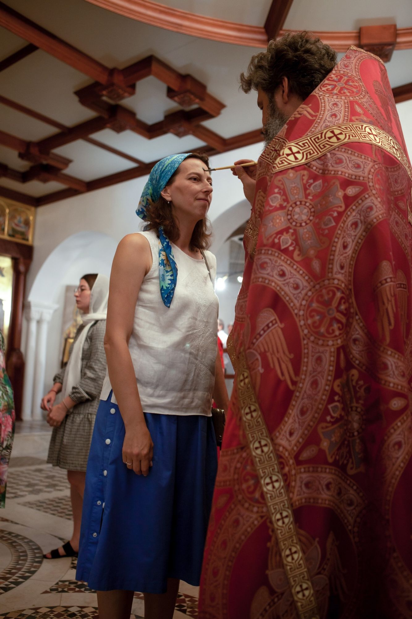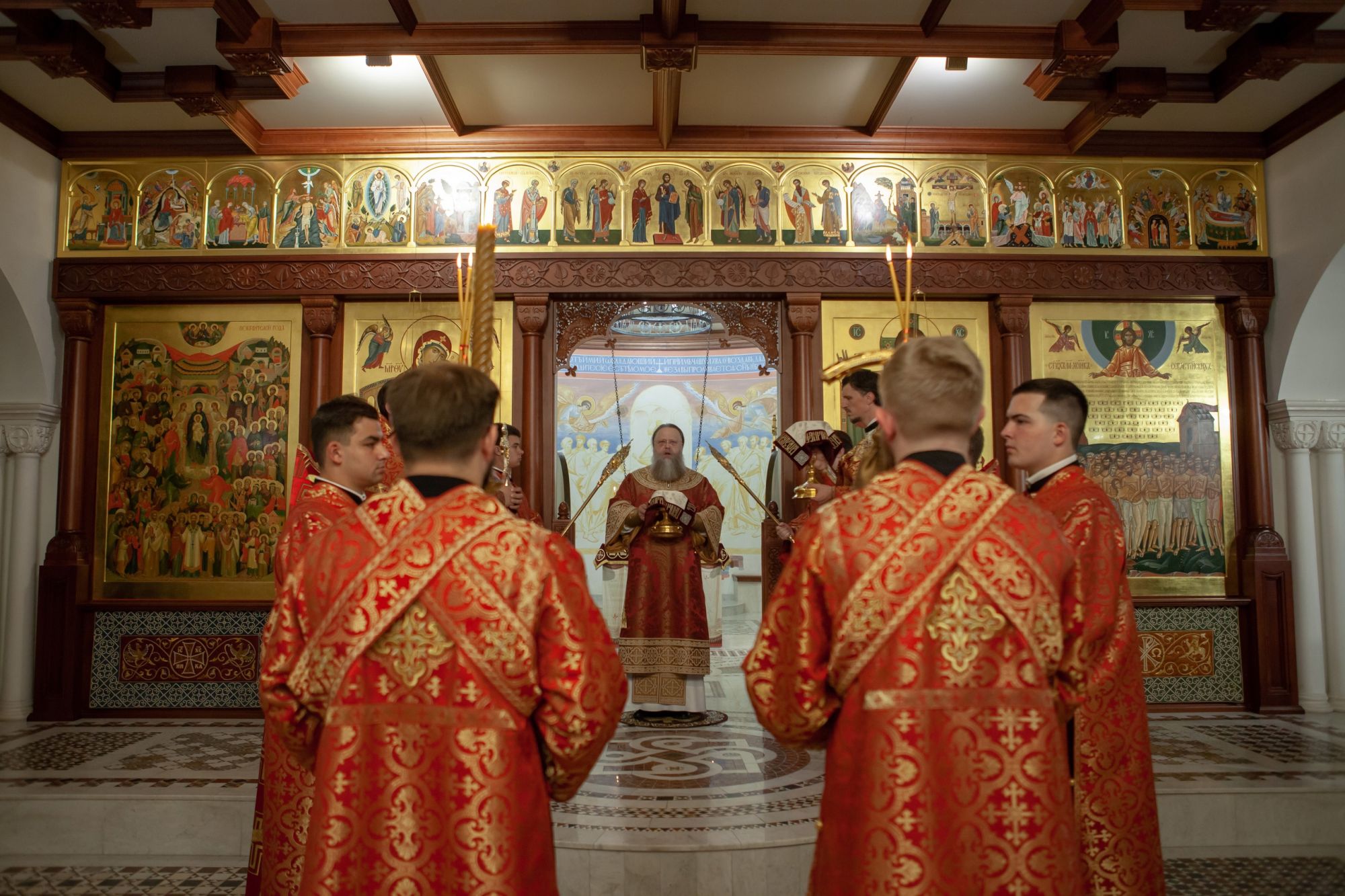 На сугубой ектении были вознесены молитвы об умножении мира и любви. Песнопения богослужения исполнил хор храма под управлением Ашота Паланджяна. Проповедь перед Святым Причастием произнес клирик храма иерей Роман Зимин.