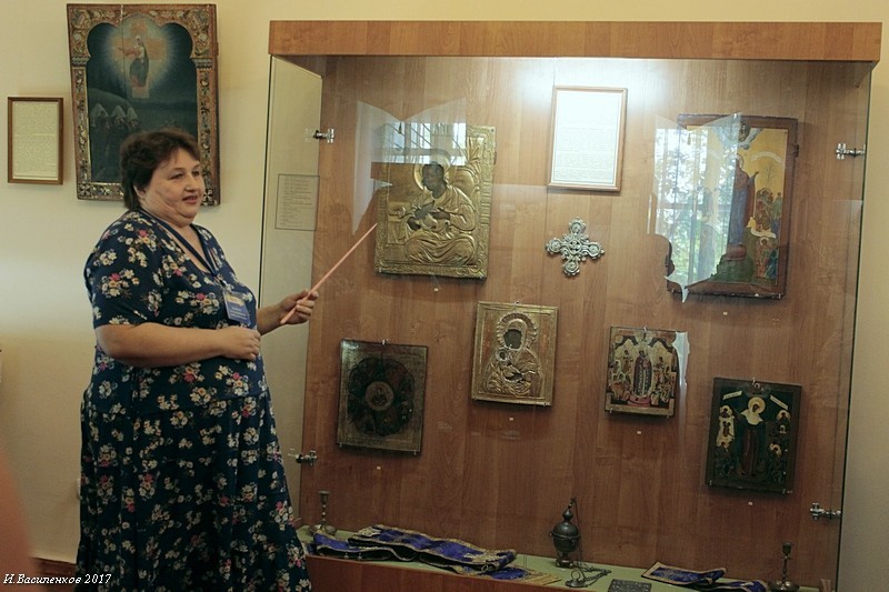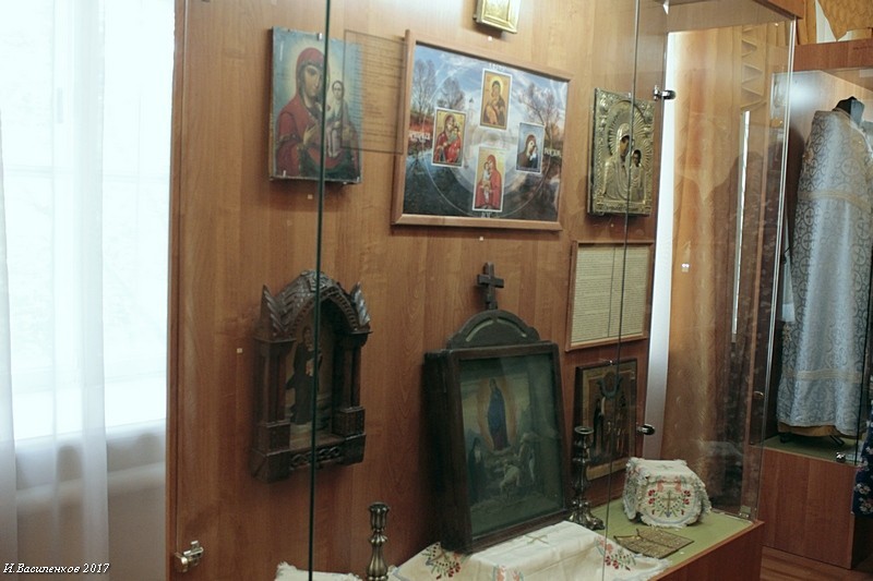 Выставка посвящена различным образам Пресвятой Богородицы, изображенным в иконах, также на экспозиции представлена церковная атрибутика и литература из музейных архивов.