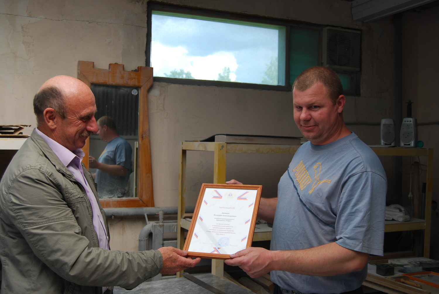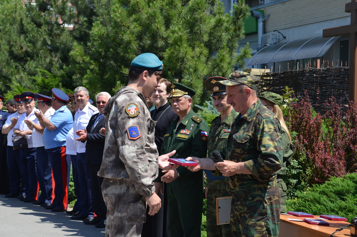В рамках празднования Дня России 12 июня по поручению Директора Российского Государственного военного историко-культурного центра при Правительстве Российской Федерации контр-адмирала Фетисова Вячеслава Васильевича представителями Ростовского духовно-патриотического центра Святого Георгия Победоносца были вручены награды отдельным гражданам и организациям, активно участвующим в военно патриотической работе. В их числе наш приход Святого Георгия Победоносца (настоятель протоиерей Валерий Волощук), за работу по духовно-нравственному, военно-патриотическому, историко-культурному воспитанию детей и молодежи, подготовке их к службе в Российской армии; производственное предприятие «Родос» (директор Сыркин Юрий Дмитриевич), активно участвующее в увековечивании памяти погибших защитников Отечества.