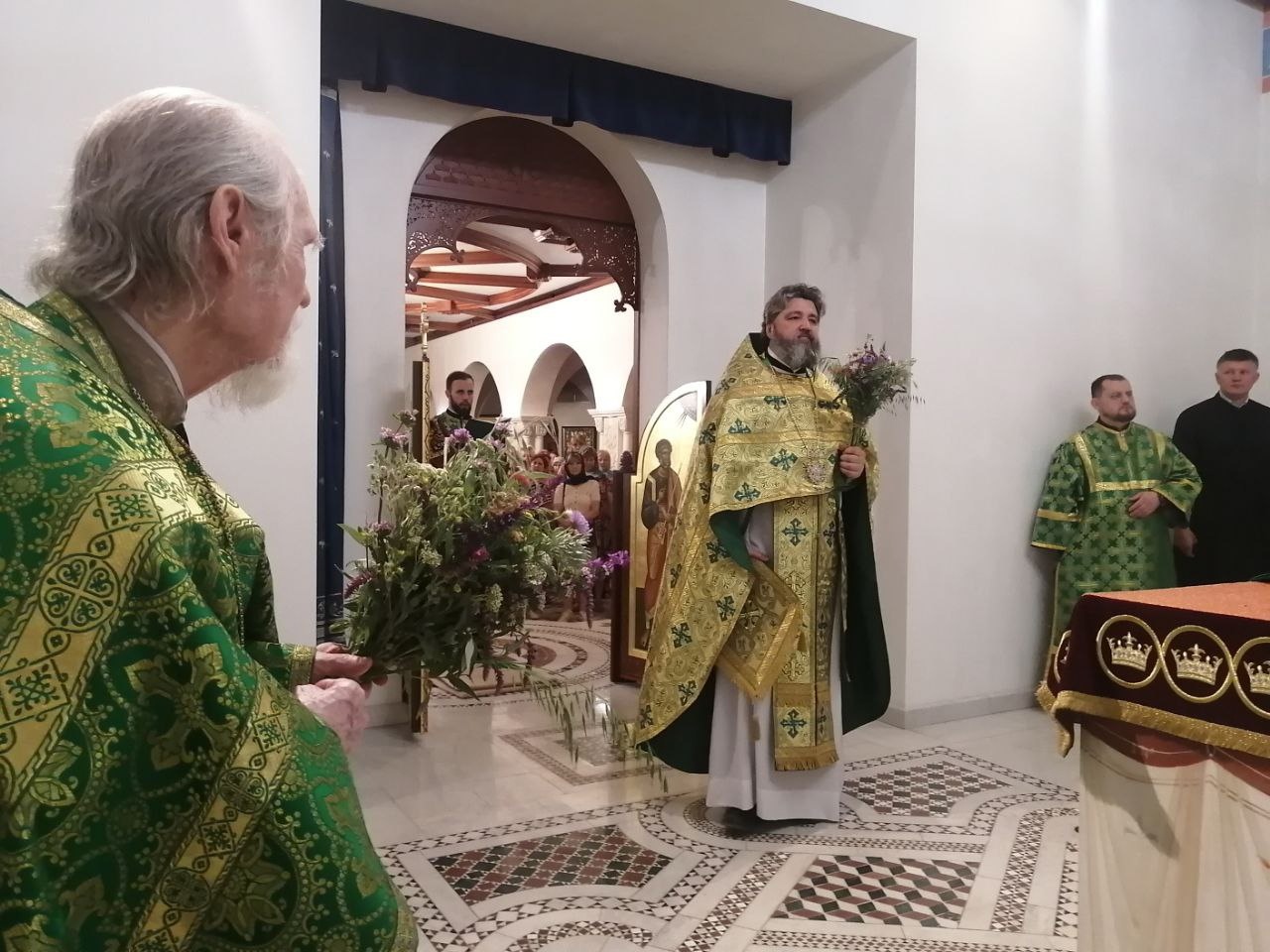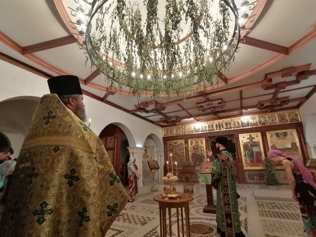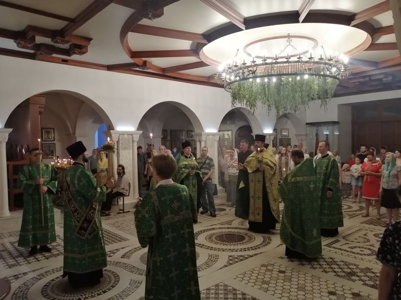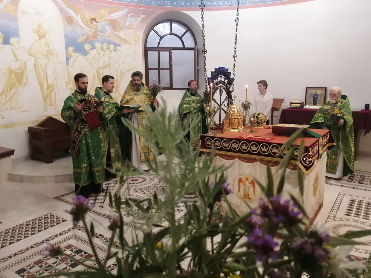 Сам, многомилостивый и Человеколюбец, услышь нас, в какой бы день мы ни призвали Тебя, особенно же в этот день Пятидесятницы, в который по вознесении Господа нашего Иисуса Христа на небеса, когда Он и воссел по правую руку Тебя, Бога и Отца, и ниспослал на святых Своих учеников и Апостолов Святого Духа, Который и почил на каждом из них, и исполнились все неистощимой благодати Его и стали говорить на иных языках о великих делах Твоих и пророчествовать.