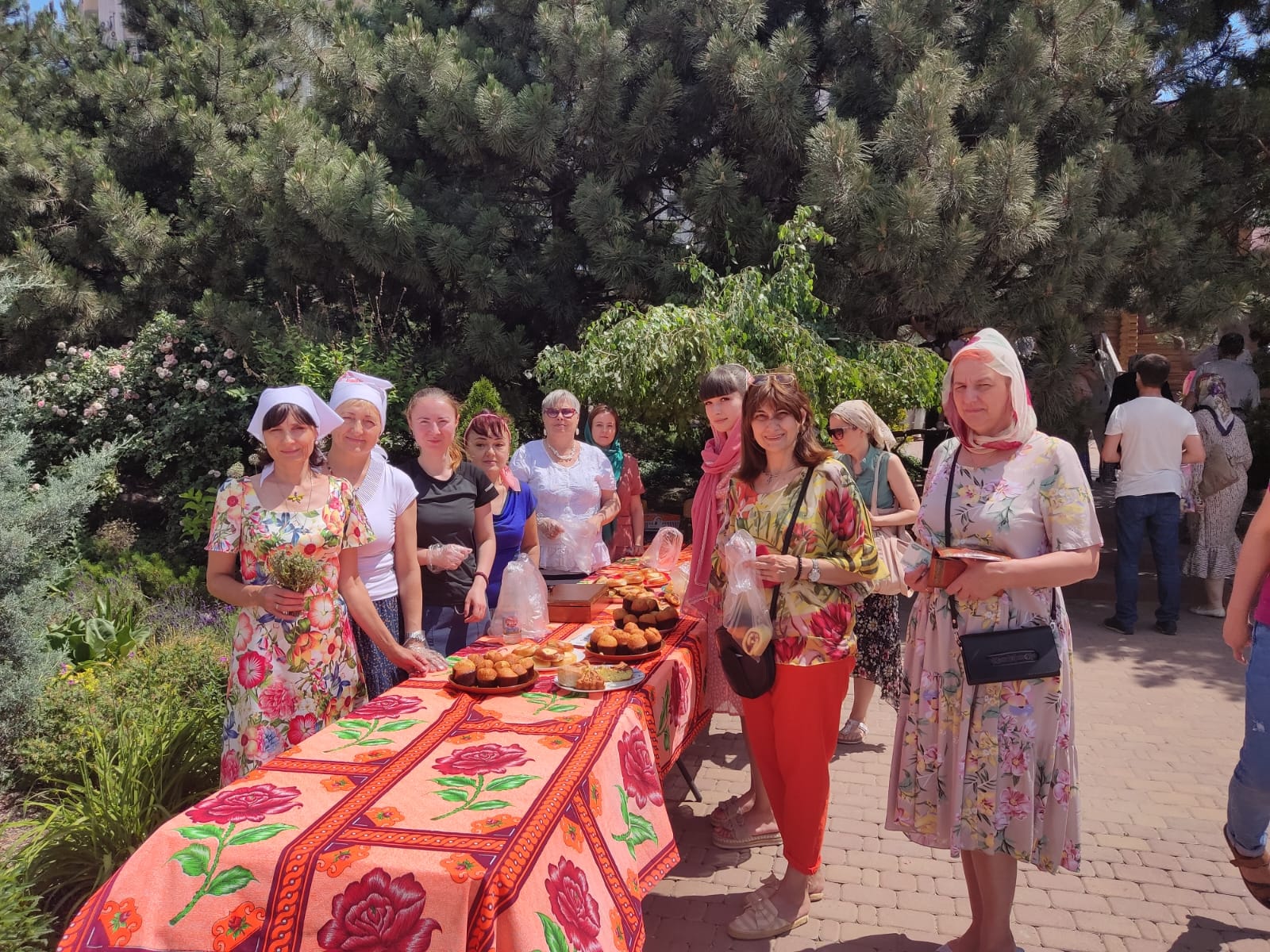 12 июня 2022 года по благословению настоятеля протоиерея Валерия Волощука сёстры милосердия храма Иоанна Воина приняли участие в праздничной приходской ярмарке. Наши сестры и трапезницы с любовью приготовили выпечку, которую раздавали на празднике прихожанам за пожертвования на благотворительную акцию «Дела милосердные». Все собранные денежные средства пойдут на оказание помощи инвалидам, беженцам и малоимущим, находящимся под опекой нашего прихода.