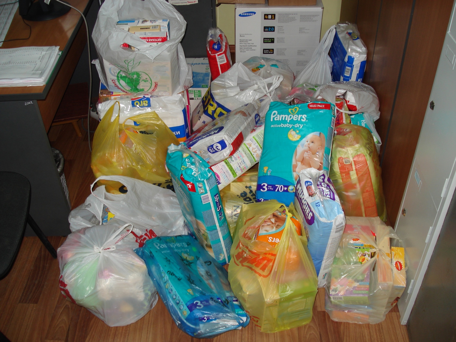 Родители учащихся воскресной школы и прихожане нашего храма собрали для самых маленьких детей из Украины памперсы и детское питание на сумму около 7.000 руб.