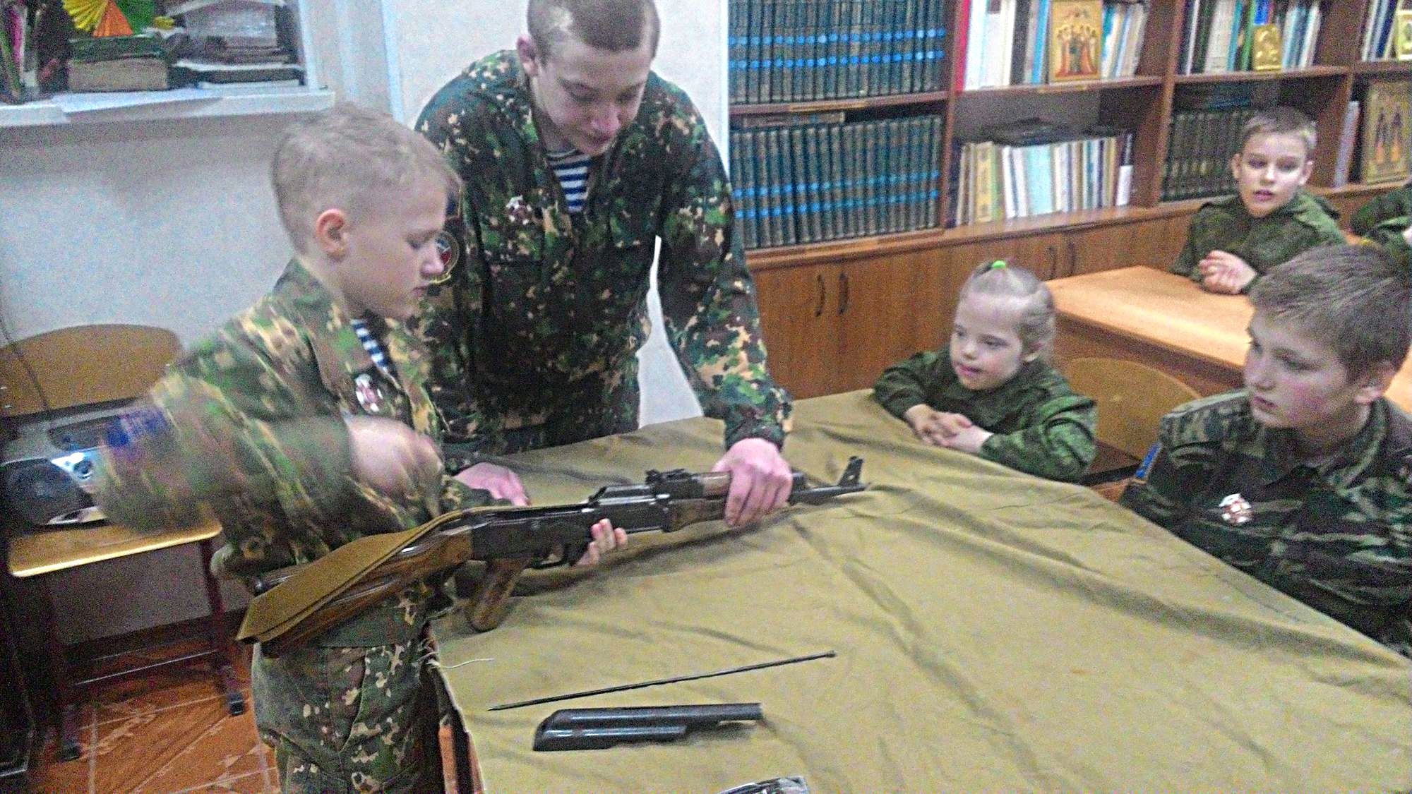 12 марта 2017 года представители Ростовского духовно-патриотического центра святого Георгия Победоносца провели занятие по программе начальной военной подготовки к службе в Российской армии "Урок мужества" для воспитанников приходской воскресной школы храма Иоанна Воина.