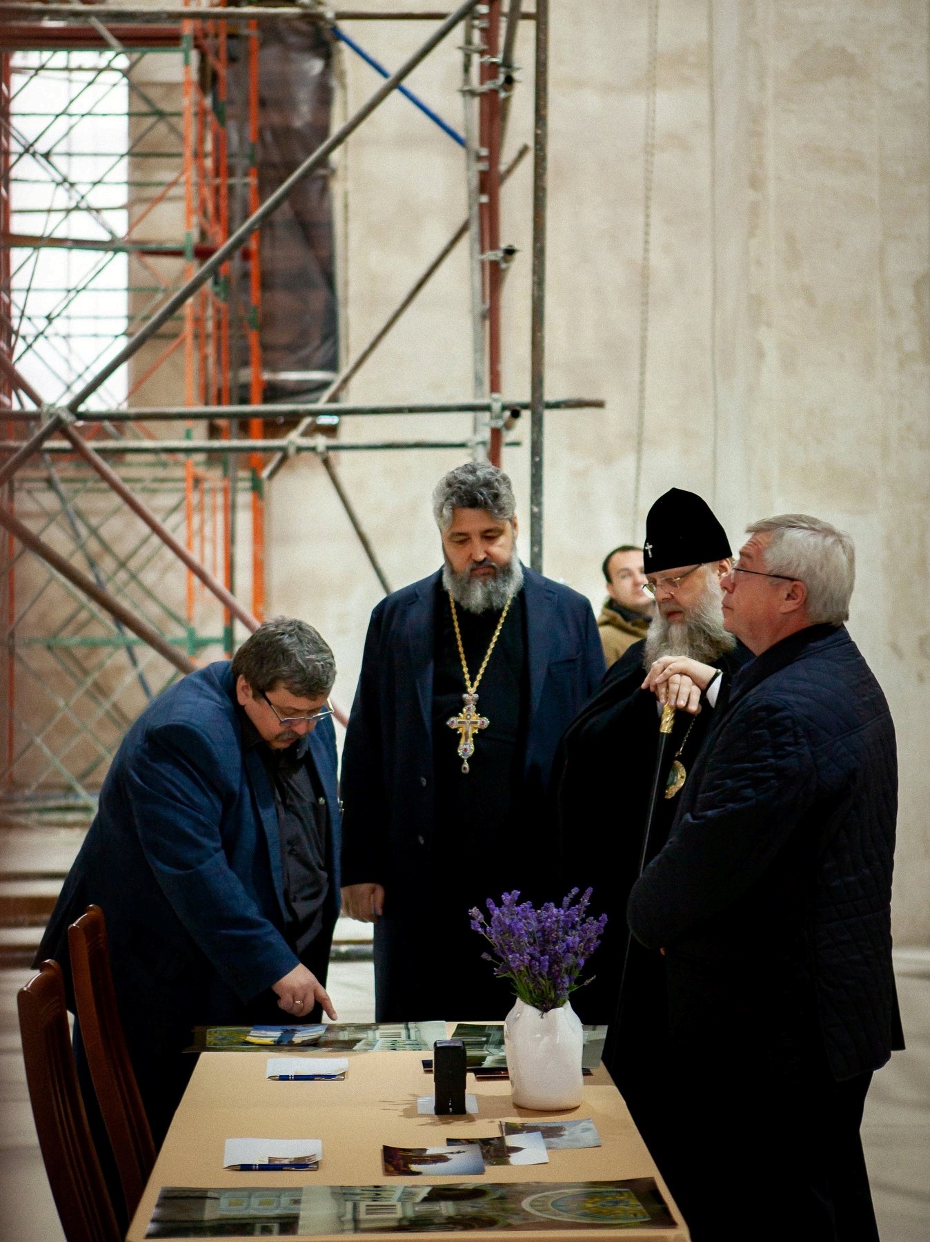 12 ноября наш приход с рабочим визитом посетили Глава Донской митрополии митрополит Ростовский и Новочеркасский Меркурий и Губернатор Ростовской области Василий Голубев. Настоятель прихода протоиерей Валерий Волощук ознакомил гостей с текущим этапом строительных работ. Проект росписи храма представил автор, один из ведущих специалистов в области фресковой росписи, преподаватель иконописного факультета Московской духовной академии, иконописец Троице-Сергиевой Лавры Анатолий Алёшин.