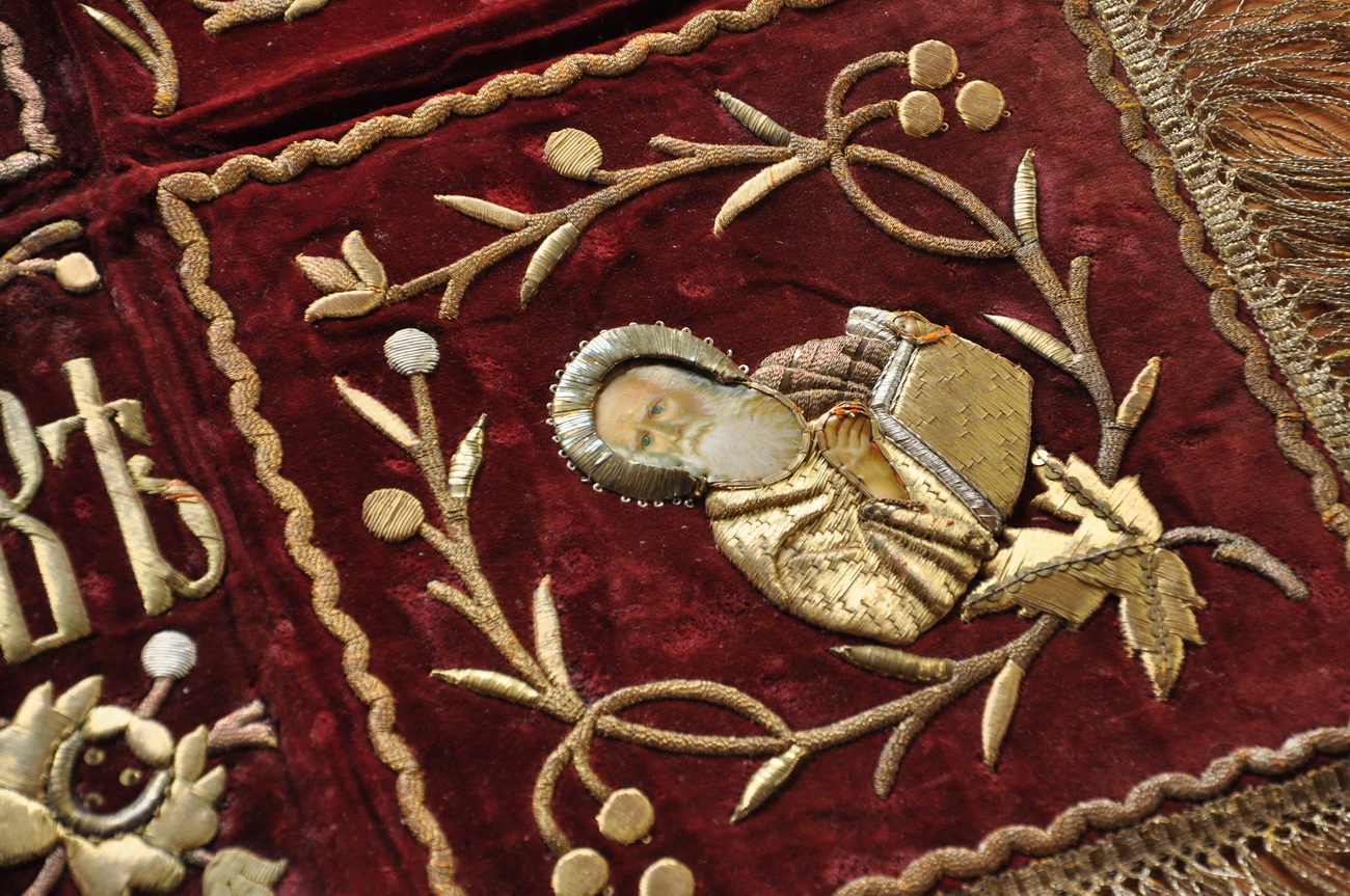 Эта плащаница выносится в Храме Иоанна Воина впервые. Совсем недавно она была выкуплена благочестивым прихожанином из частной коллекции, в которой находилась около 25 лет, и подарена приходу. По оценке экспертов ее создание можно отнести к середине 19 века.