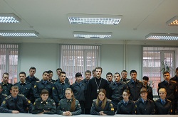 12 февраля 2013 года в Ростовском юридическом институте МВД России состоялась очередная встреча клирика прихода Святого Георгия Победоносца иерея Романа Зимина с курсантами института. Темой беседы на этот раз стали Десять заповедей закона Моисеева. Курсанты обсудили с отцом Романом роль заповедей в жизни Ветхозаветной Церкви, а также их актуальность в наше время.