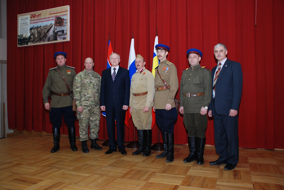 13 февраля 2013 года представители Ростовского духовно-патриотического центра Святого Георгия Победоносца Владимир Афанасенко, Андрей Кудряков, Павел Ждамиров и Виктор Чуцков в составе группы общественных патриотических организаций приняли участие в торжественном мероприятии, посвященном 70-летию освобождения г. Ростова-на-Дону от немецко-фашистских захватчиков. Мероприятие прошло в здании Управления ФСБ России по Ростовской области, в нем участвовали сотрудники Управления, ветераны и кадеты Донского Николая Второго кадетского корпуса. Представители Ростовского духовно-патриотического центра Святого Георгия Победоносца провели демонстрацию исторических фотографий и сохранившихся со времен войны предметов, подготовили научный доклад о февральском освобождении г. Ростова-на-Дону. Для собравшихся была исполнена авторская песенно-поэтическая программа в сопровождении видеоматериала, подготовленного Донским военно-историческим музеем под руководством Ивана Стреляева, директора музея и представителя Ростовского духовно-патриотического центра Святого Георгия Победоносца.