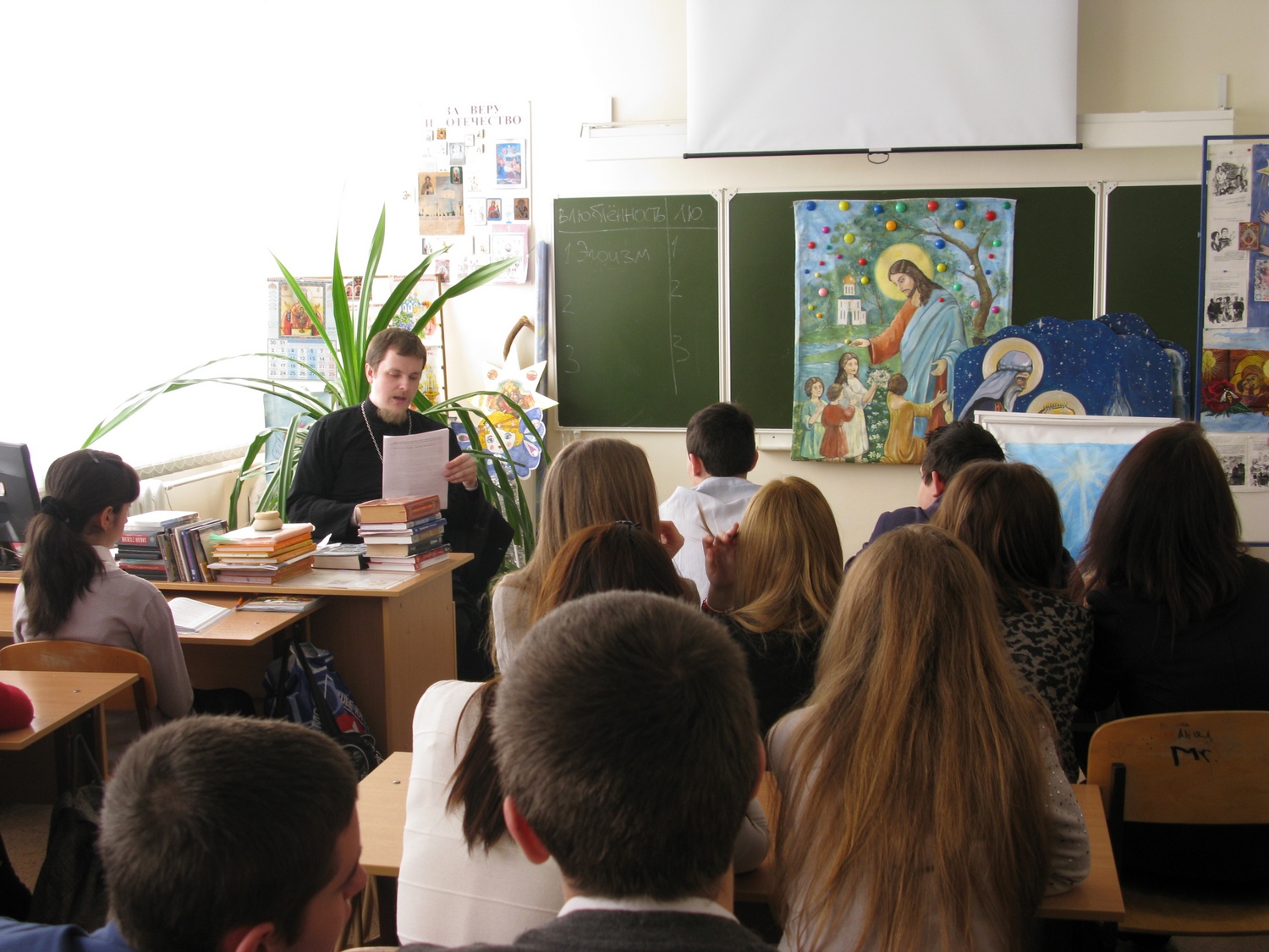 13 февраля 2015 года в преддверии Дня православной молодёжи, который отмечается 15 февраля, по инициативе прихода Святого Георгия Победоносца настоятель прихода протоиерей Валерий Волощук и иерей Роман Зимин провели беседы с учащимися девятых, десятых и одиннадцатых классов гимназии 117 и школы 73.