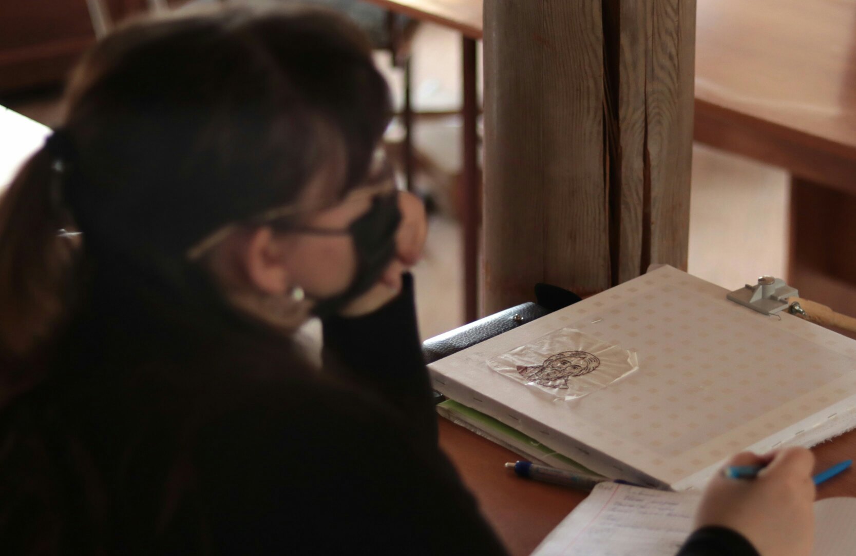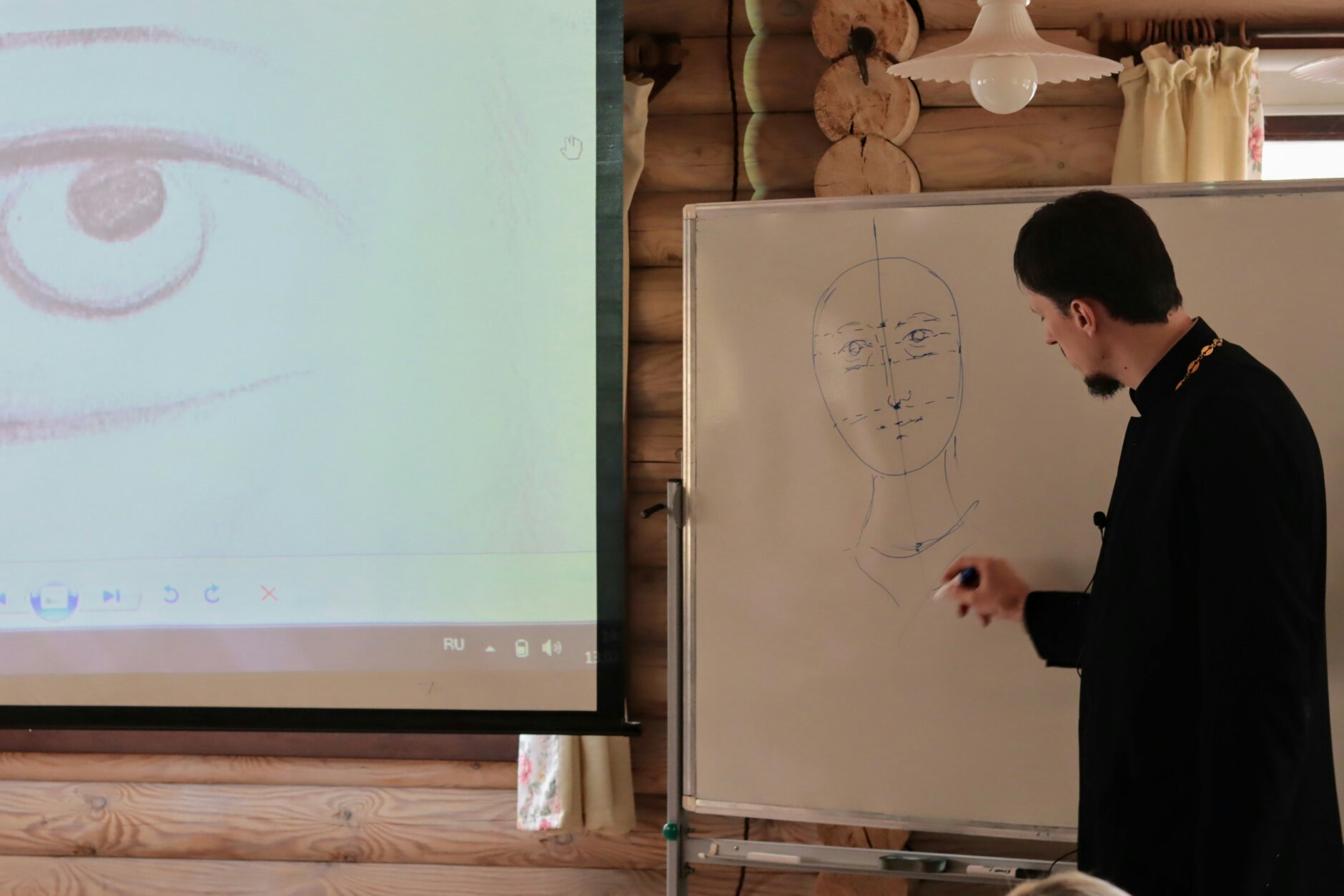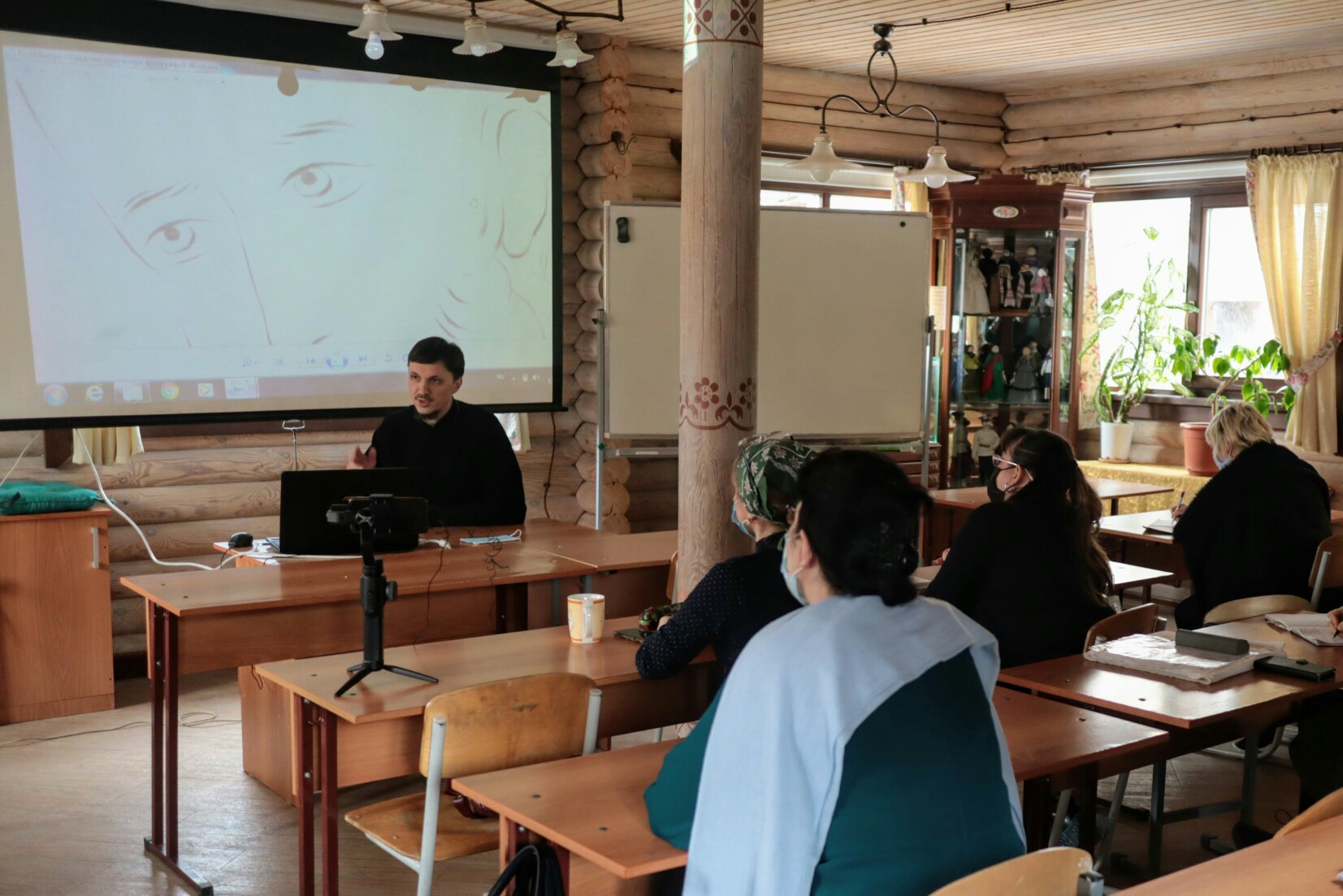 13 февраля 2021 года для студентов Школы церковной вышивки золотошвейной мастерской в честь святой праведной Тавифы состоялась лекция по иконописному рисунку, которую провел руководитель иконописного отделения Донской духовной семинарии иерей Александр Литвиненко.