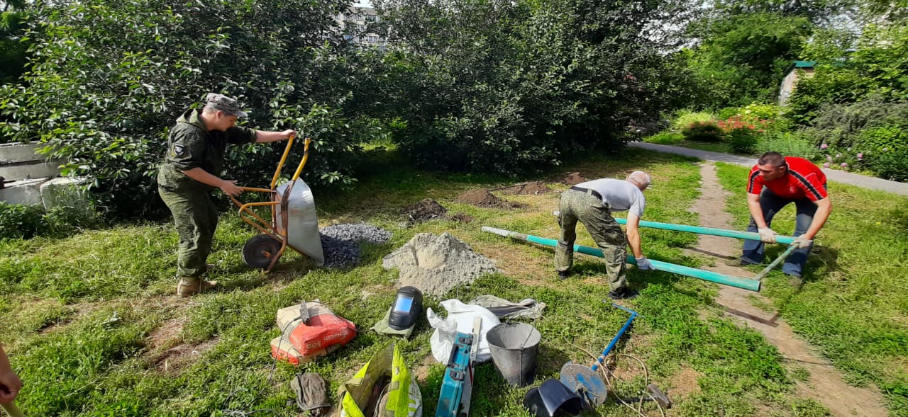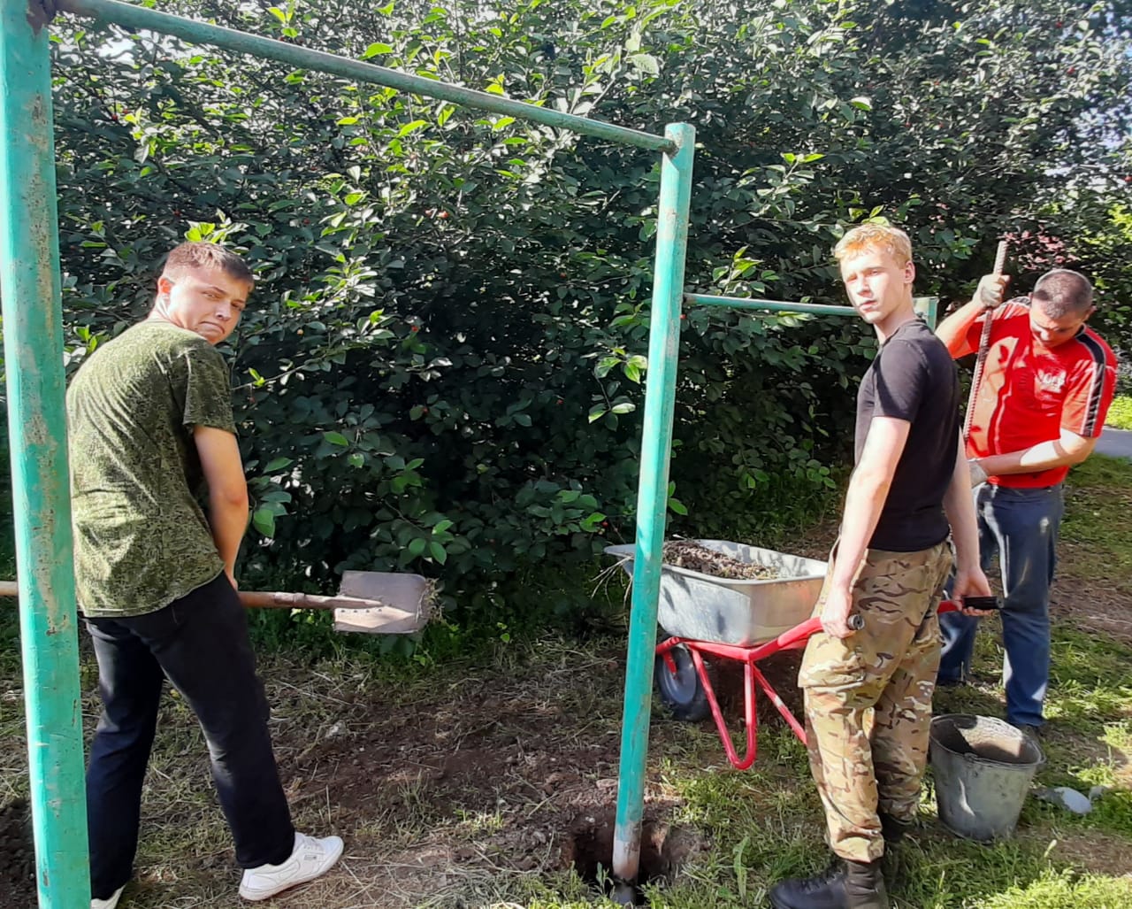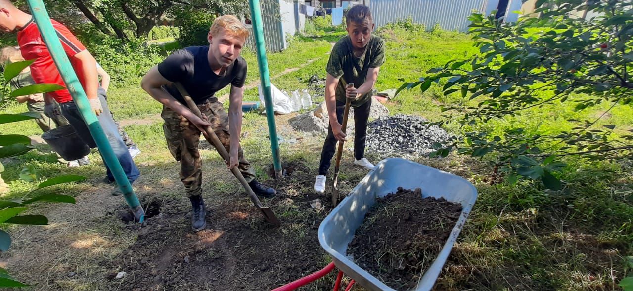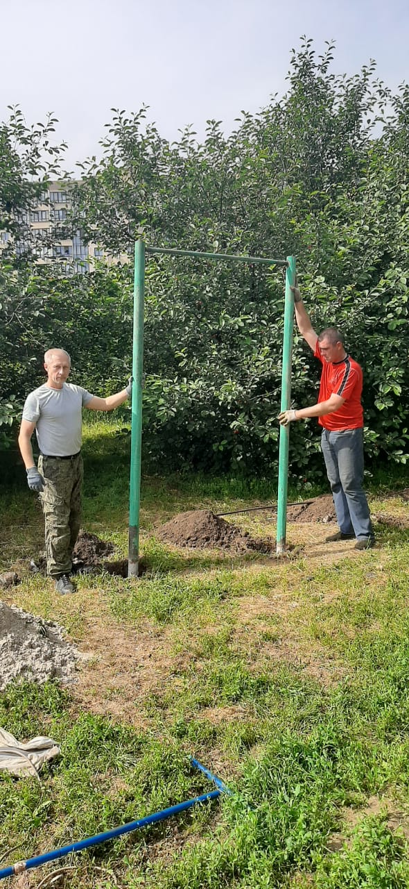 В этот же день юные защитники Отечества совместно с родителями в рамках начального трудового обучения занимались установкой и монтажом спортивных снарядов. Занятия закончились совместным чаепитием с печеньем и конфетами, которые были переданы приходским сестричеством.