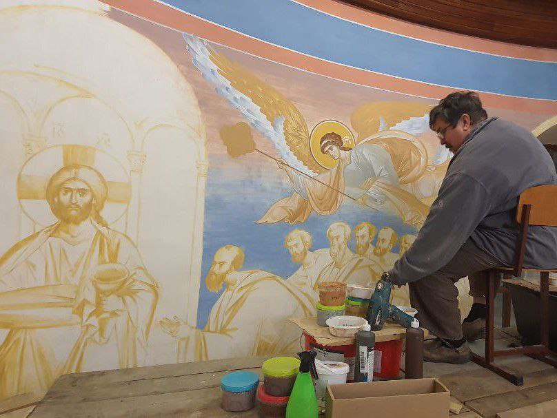 В первое воскресенье поста Церковь празднует Торжество Православия. Праздник установлен по случаю восстановления практики почитания святых и честных икон после длительного периода иконоборчества. Символично, что в этот период к нам снова приехала команда иконописцев во главе с Анатолием Алёшиным. Покажем фрагменты их работы. А более подробно расскажем через несколько дней, когда этот этап росписи будет закончен.