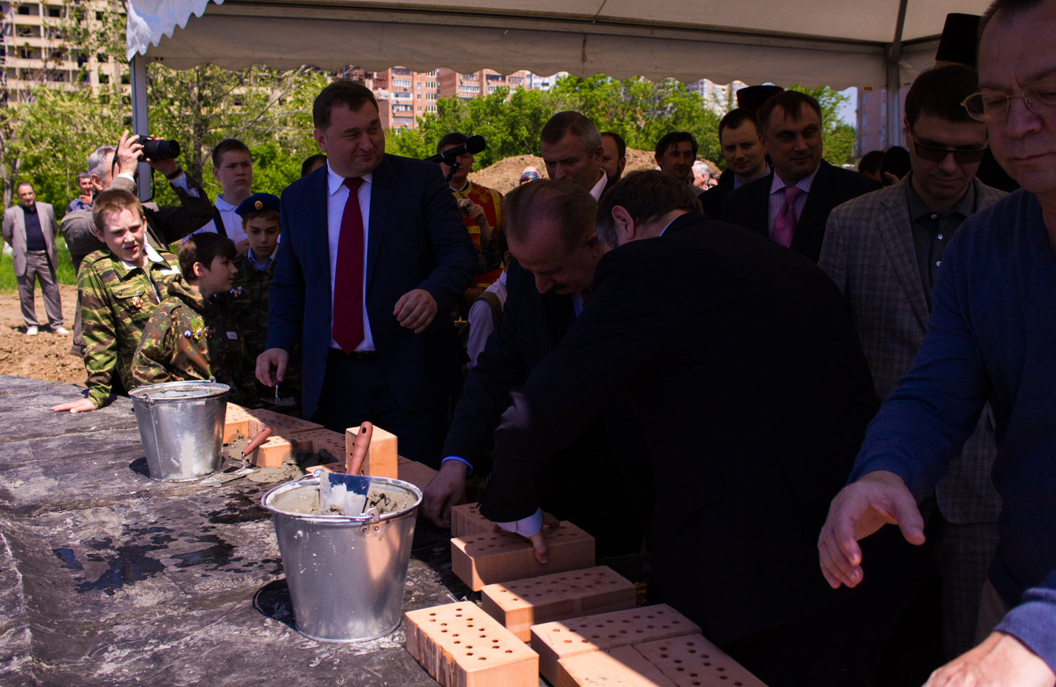 13 мая 2015 года. Закладка первого камня в основание стен храма в честь святого великомученика Георгия Победоносца