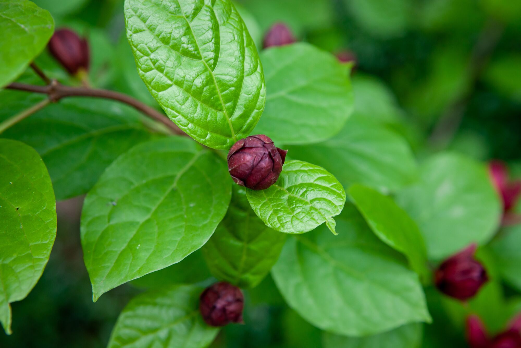 Каликант – экзотический кустарник с необычными цветками, похожими на кувшинки. Издает устойчивый аромат грейпфрута и ванили, за который его называют сладким кустарником. У каликанта самые красивые цветочные бутоны в мире.