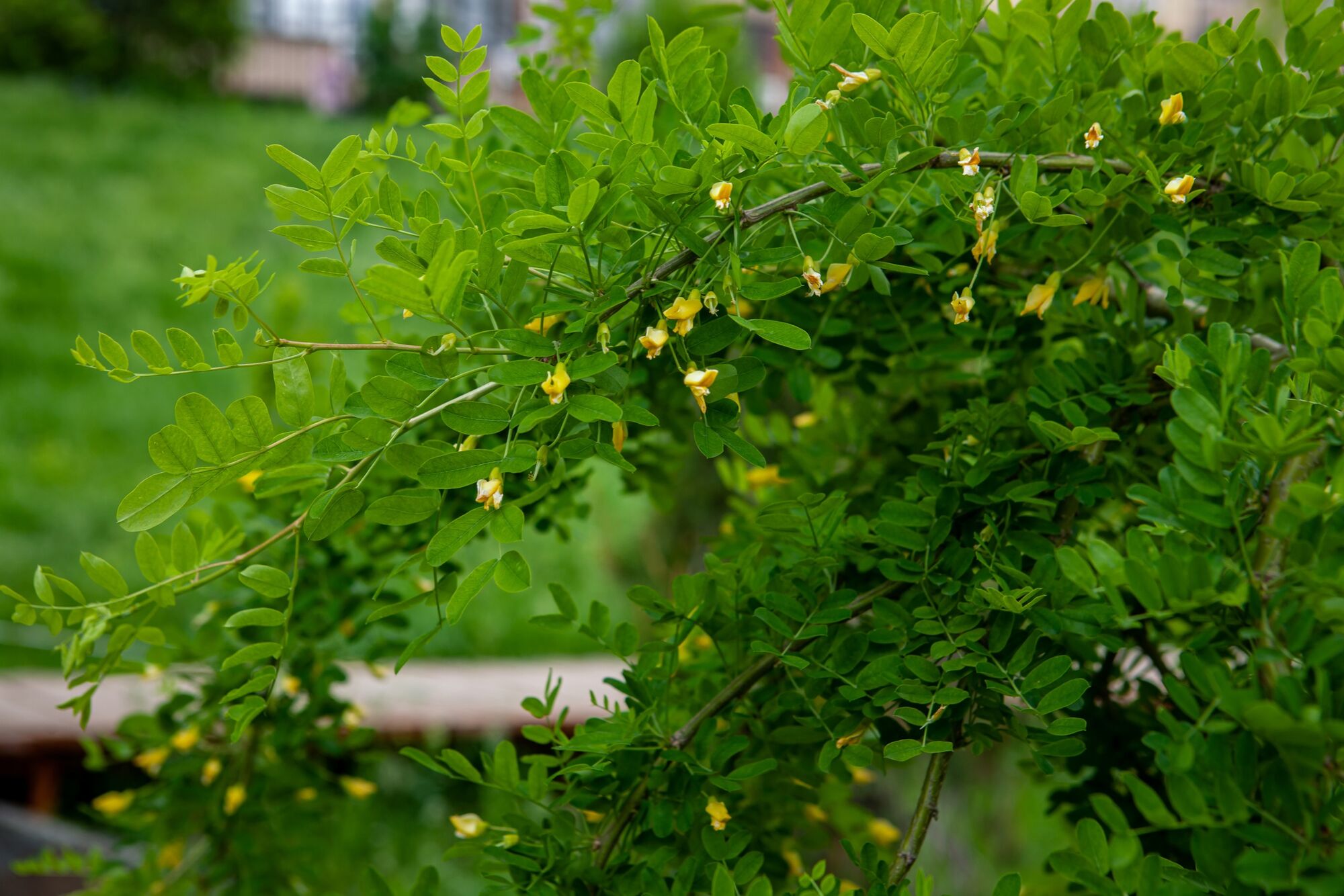 Карагана древовидная известна под названием "Сибирская акация". В конце весны покрывается тысячами желтых, напоминающих мотыльки, цветков.