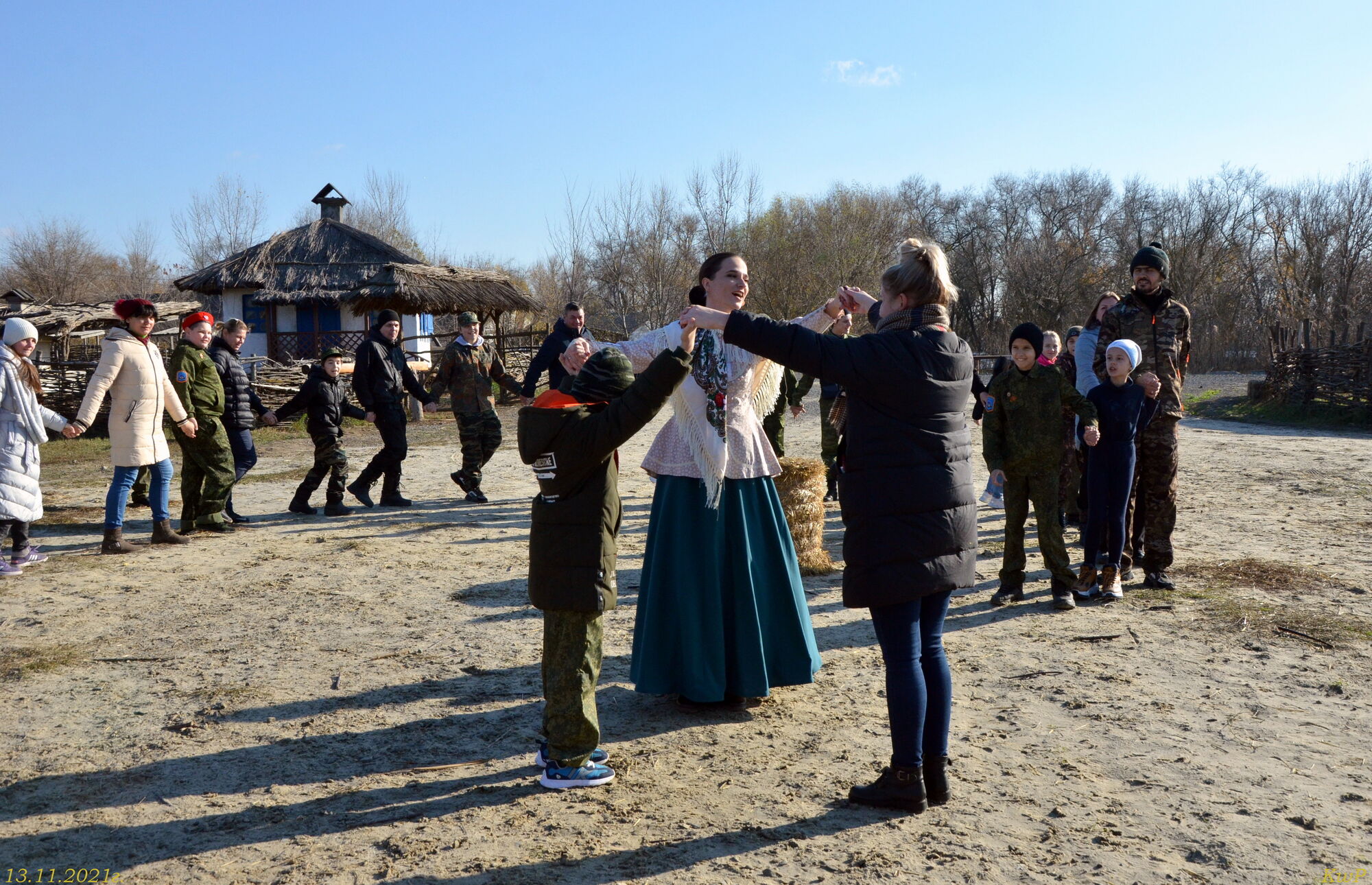 В субботу, 13 ноября, наши друзья и единомышленники руководство этно-комплекса «Кумжа», в лице Руководителя школы казачьих боевых искусств и ремёсел Юдина Петра Алексеевича и Гаджалиевой Марии Ивановны, в лучших традициях Донской края на территории этнографической станицы провели для воспитанников Ростовского духовно-патриотического центра Святого Георгия Победоносца, учащихся приходской воскресной школы и их родителей открытое занятие «Казачьи Посиделки».