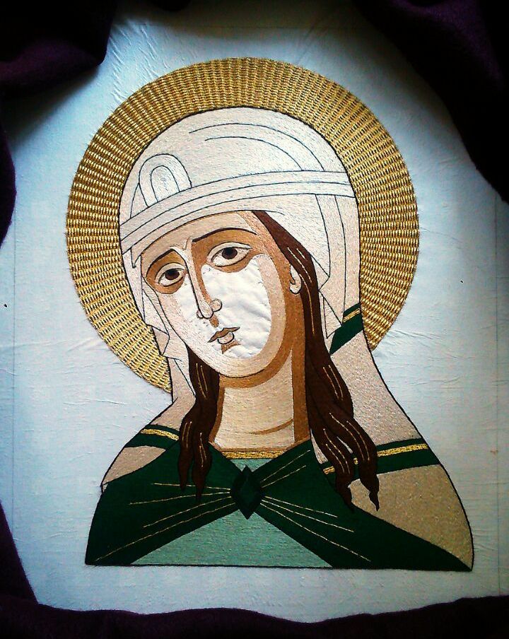 К дню Святой праведной Тавифы, празднование которого состоится 7 ноября по новому стилю, в приходской Золотошвейной мастерской планируется завершение работы над вышивкой для хоругви этой почитаемой святой. Вышивка лика и облачения выполнена шелковыми нитями в технике «в раскол», нимб - золотными нитями «в прикреп». Очень радостно, что мастерская, названная в честь святой праведной Тавифы, может таким образом чествовать свою небесную покровительницу!