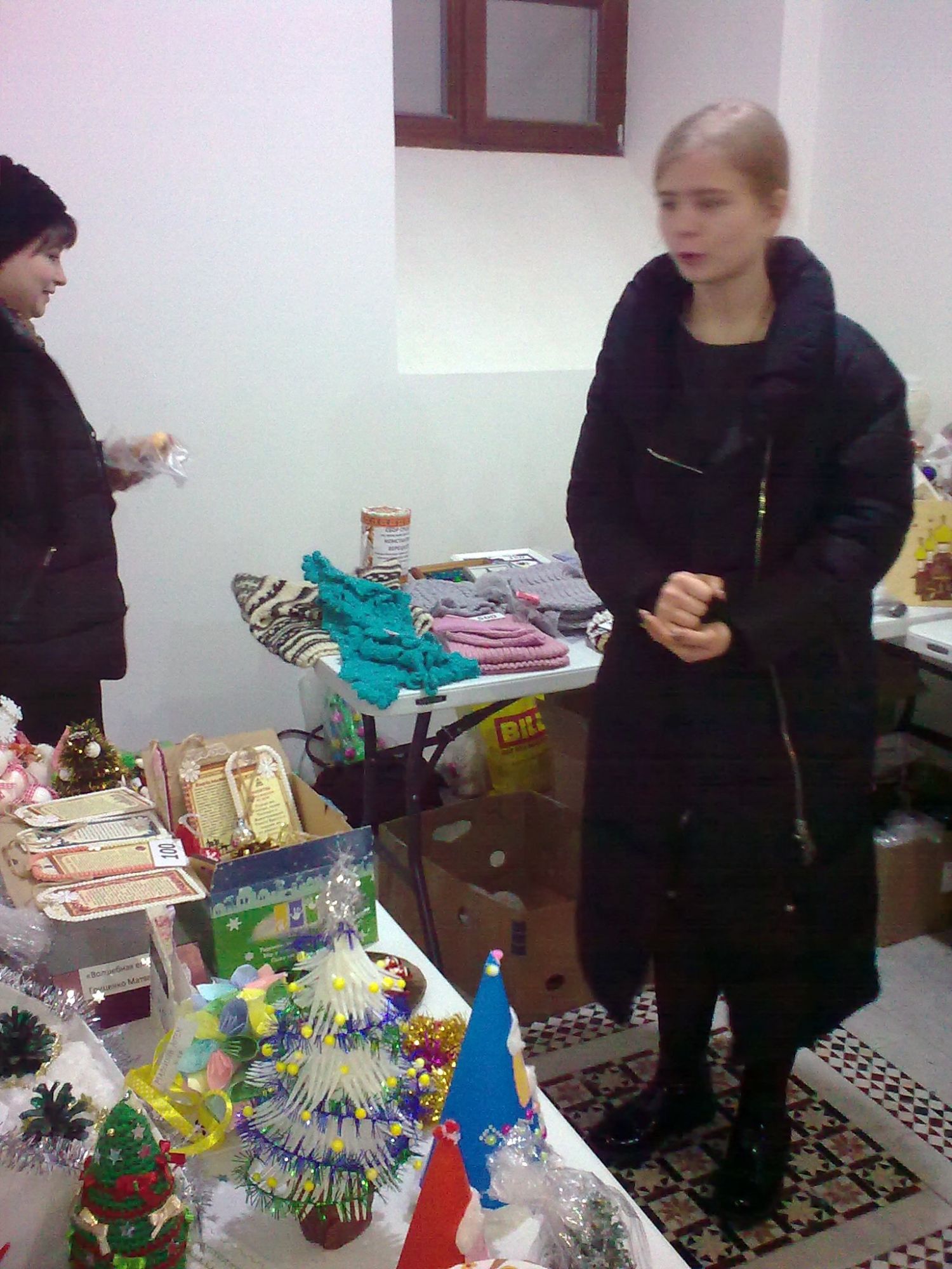 Взрослые и дети с радостью рассматривали шедевры ручного творчества. Здесь и нарядные елочные шары, снеговики, фонарики, свечи, фигурки сказочных персонажей. Также красивые ёлочки, сделанные с выдумкой из оригинального материала: макарон, бус, ткани, перьев. Большая часть поделок была приобретена в день выставки, но и потом до Рождества все нашло своего покупателя.