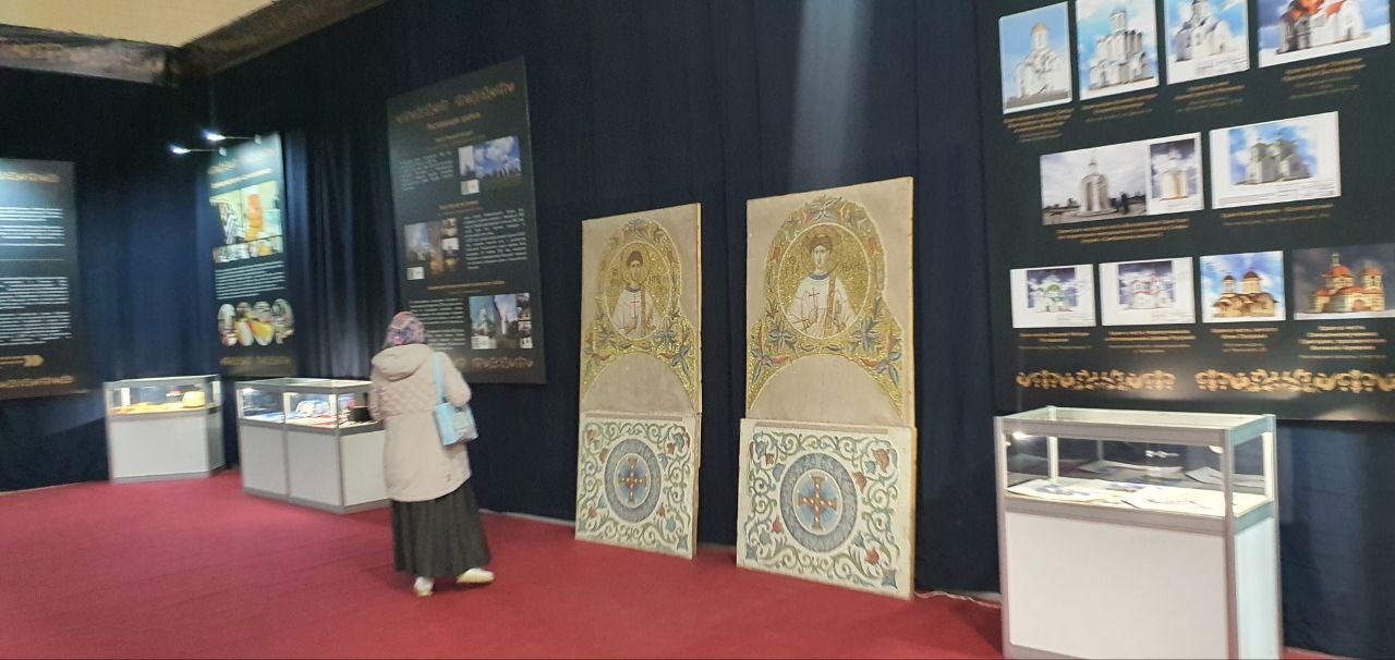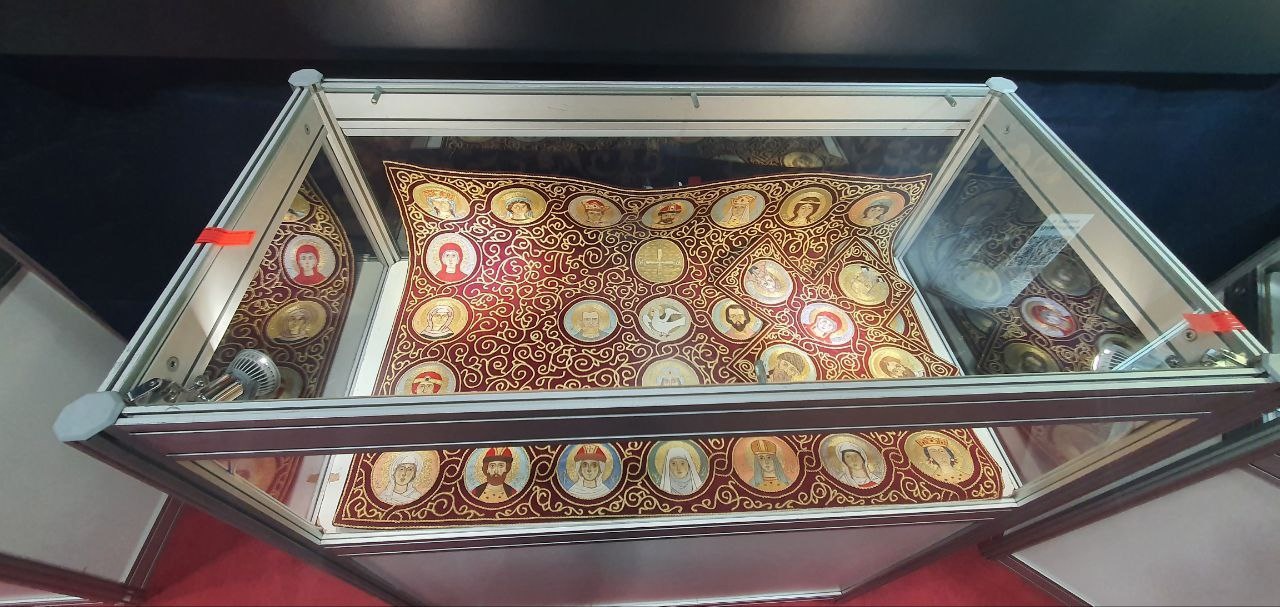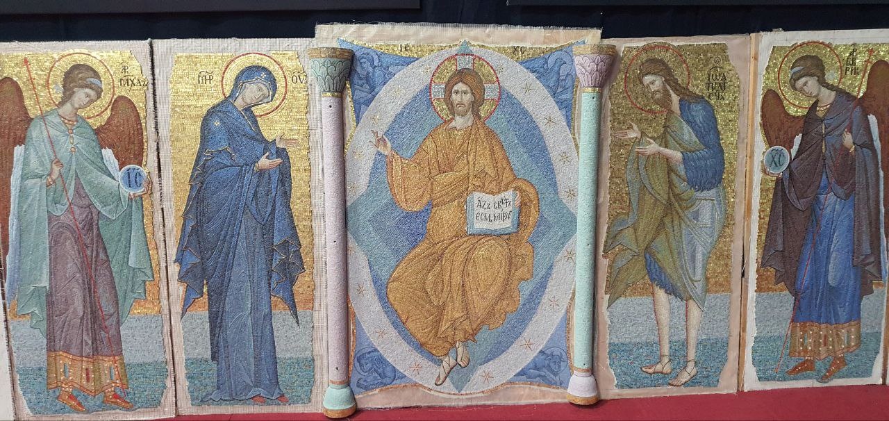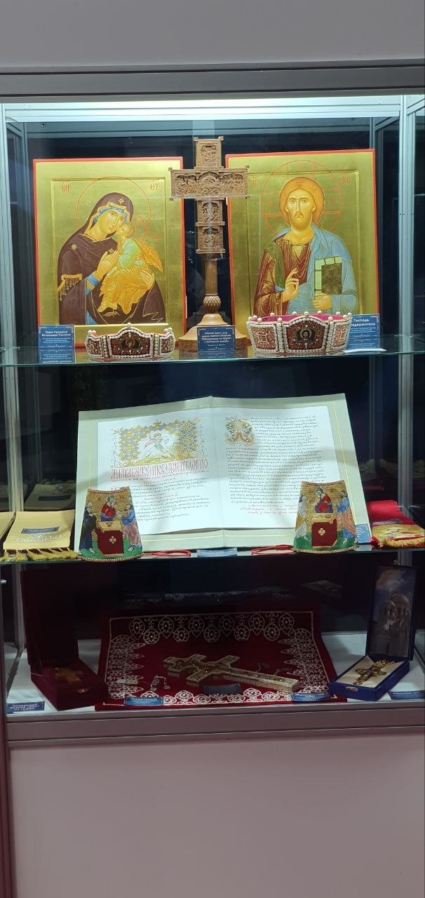Стоит отметить, что на экспозиции представлены работы наших приходских мастеров, а также мозаичные элементы иконостаса храма святого Георгия Победоносца.