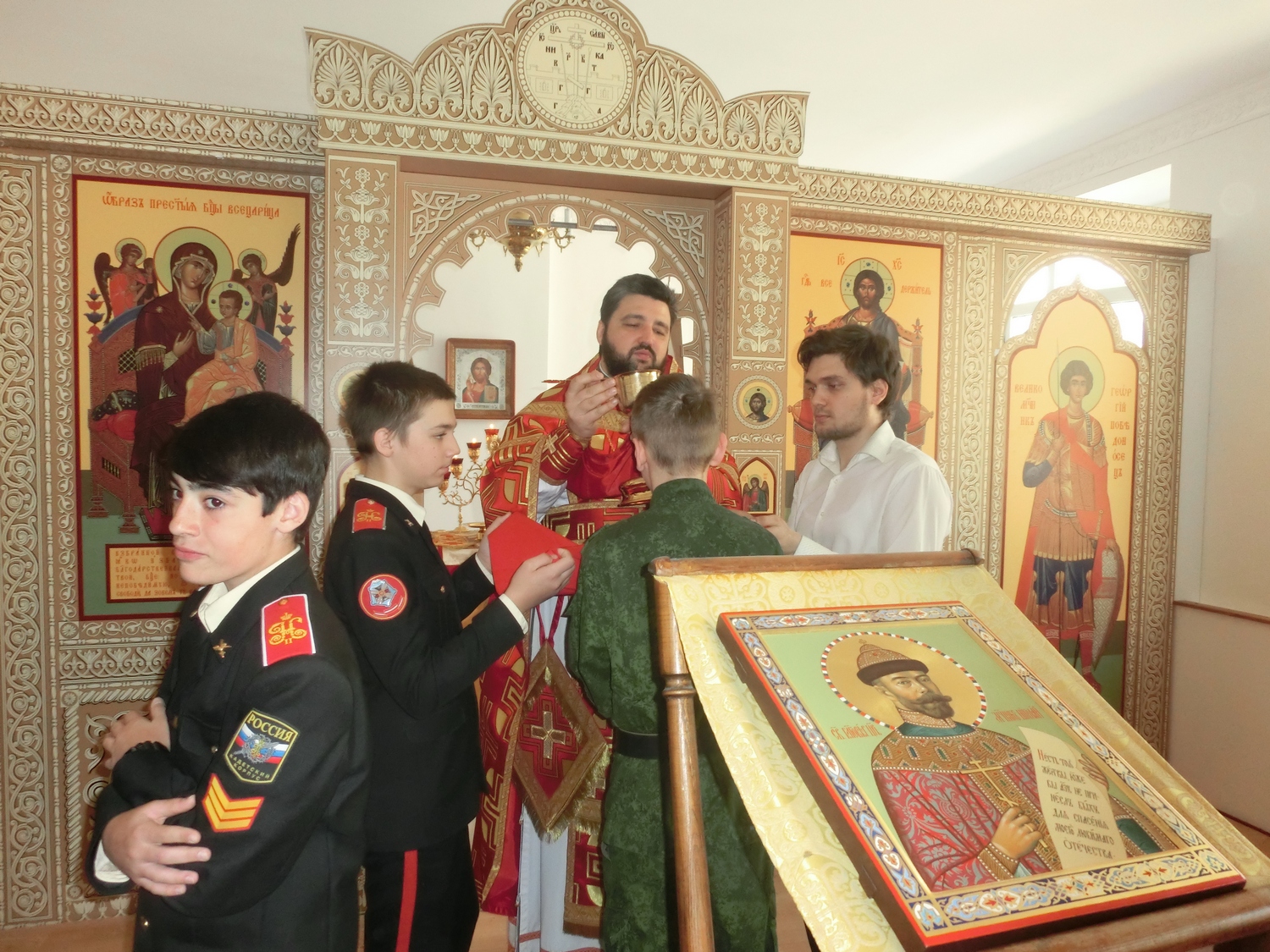 14 апреля 2015 года в домовом храме Второго Донского Императора Николая II Кадетского корпуса была совершена Божественная Литургия. Богослужение возглавил настоятель прихода Святого Георгия Победоносца протоиерей Валерий Волощук. Священник храма Иоанна Воина иерей Александр Орешин совершил таинство исповеди.