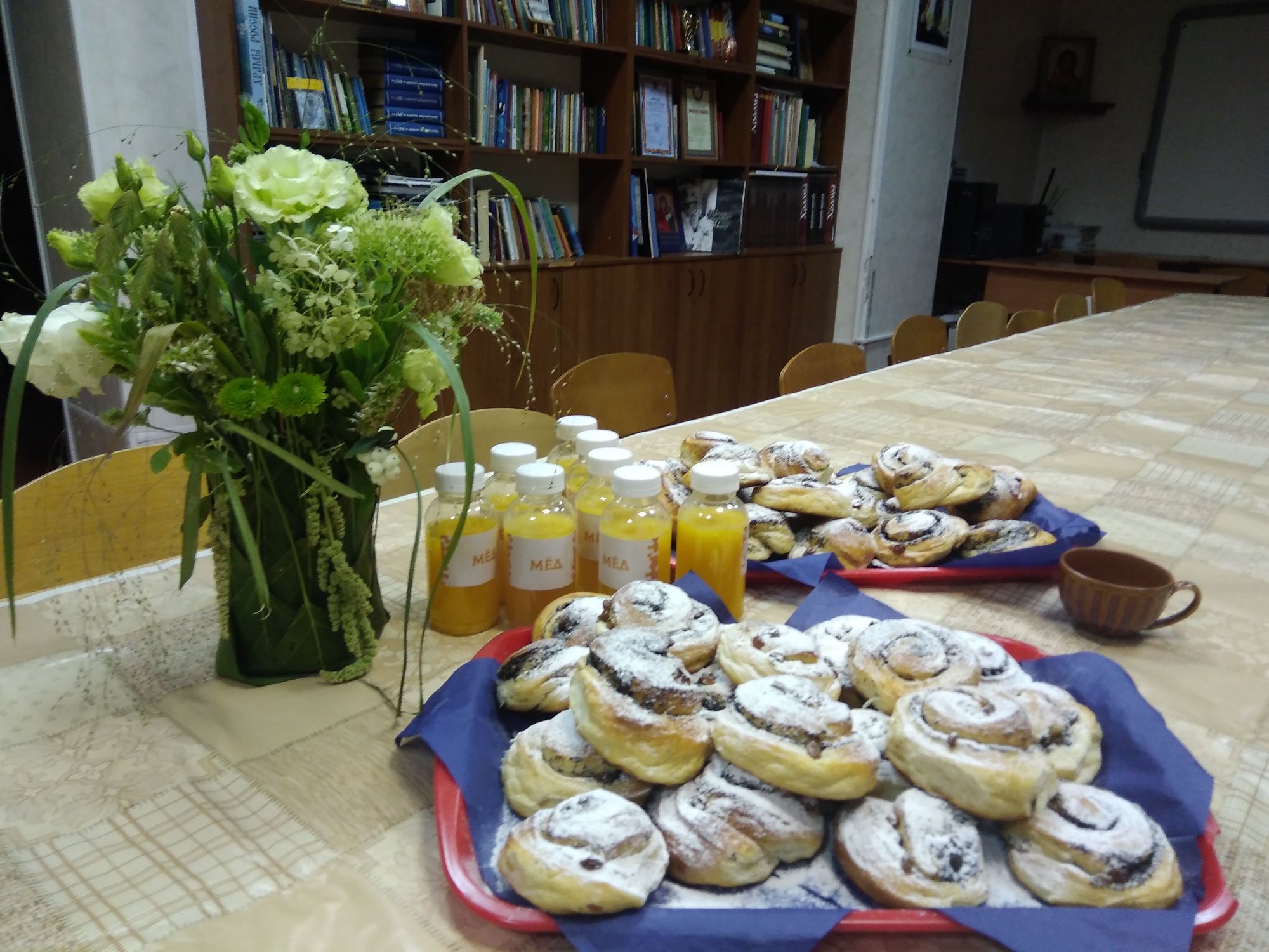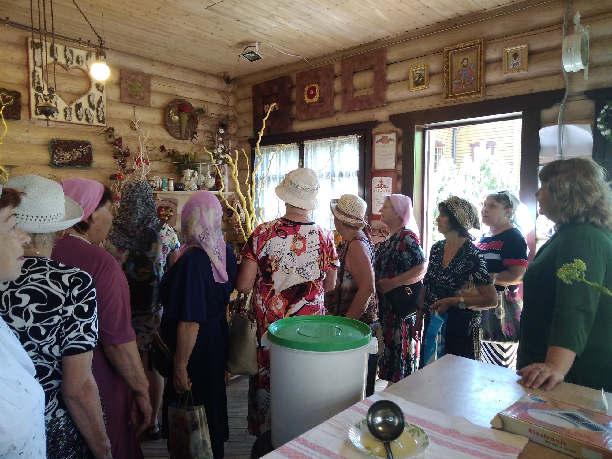 Завершилась экскурсия чаепитием, во время которого сестра милосердия Валентина Кижикина рассказала гостям об Успенском посте. Также каждый посетитель получил в подарок баночку освященного меда.
