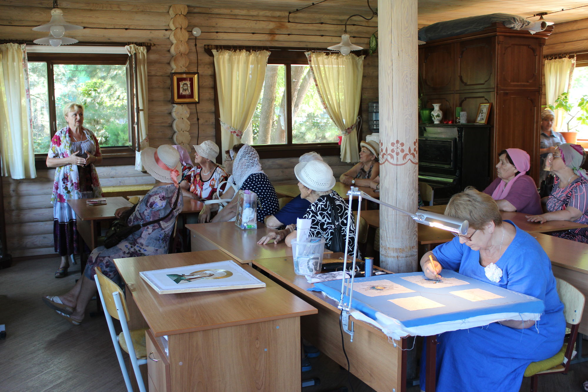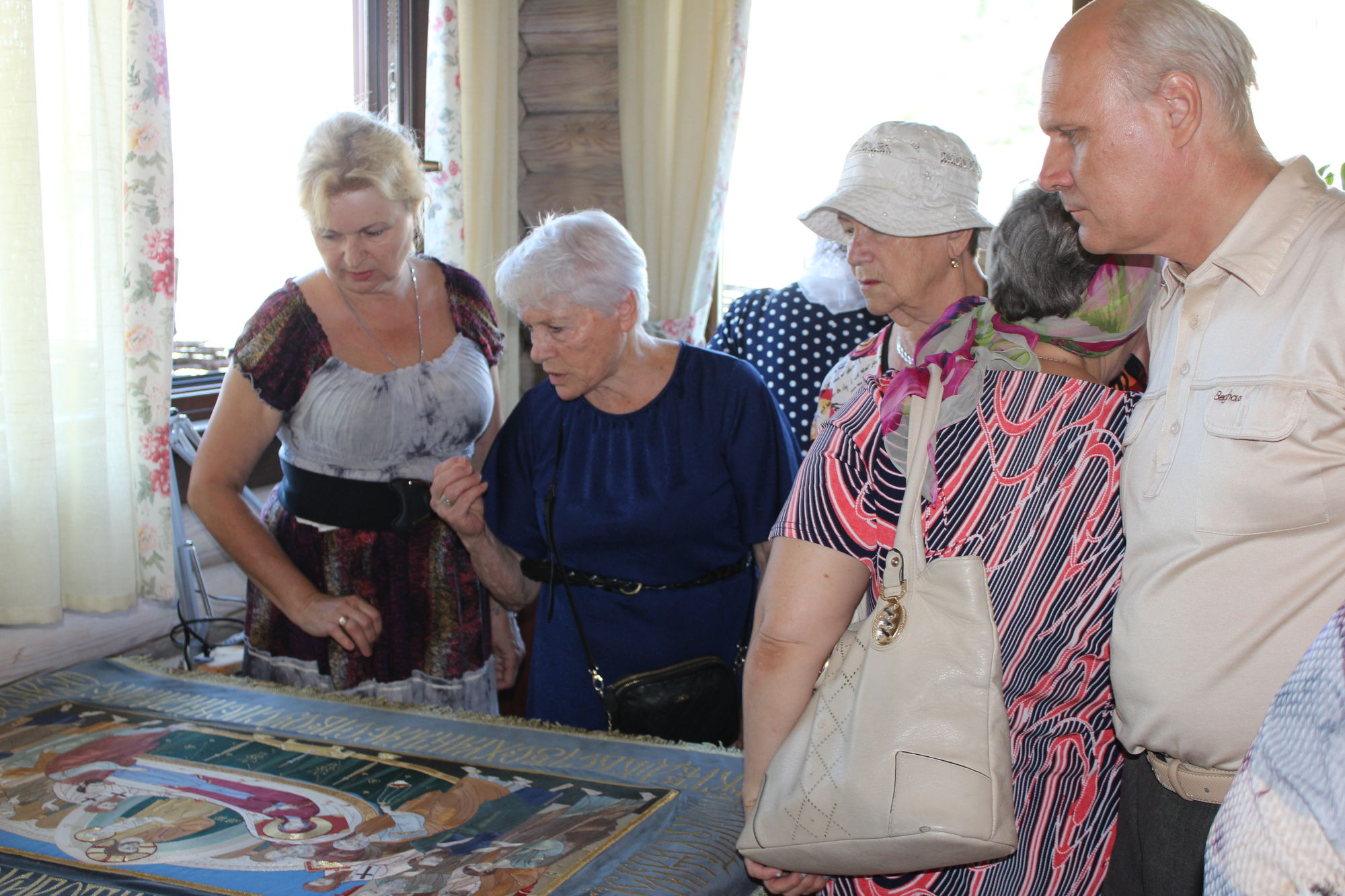 Также пенсионеры побывали в иконописной, золотошвейной и флористической мастерских, организованных при приходе. Работники мастерских рассказали гостям о том, как создается вышивка для священнических облачений и богослужебных принадлежностей, а также цветочные композиции для украшения храма.