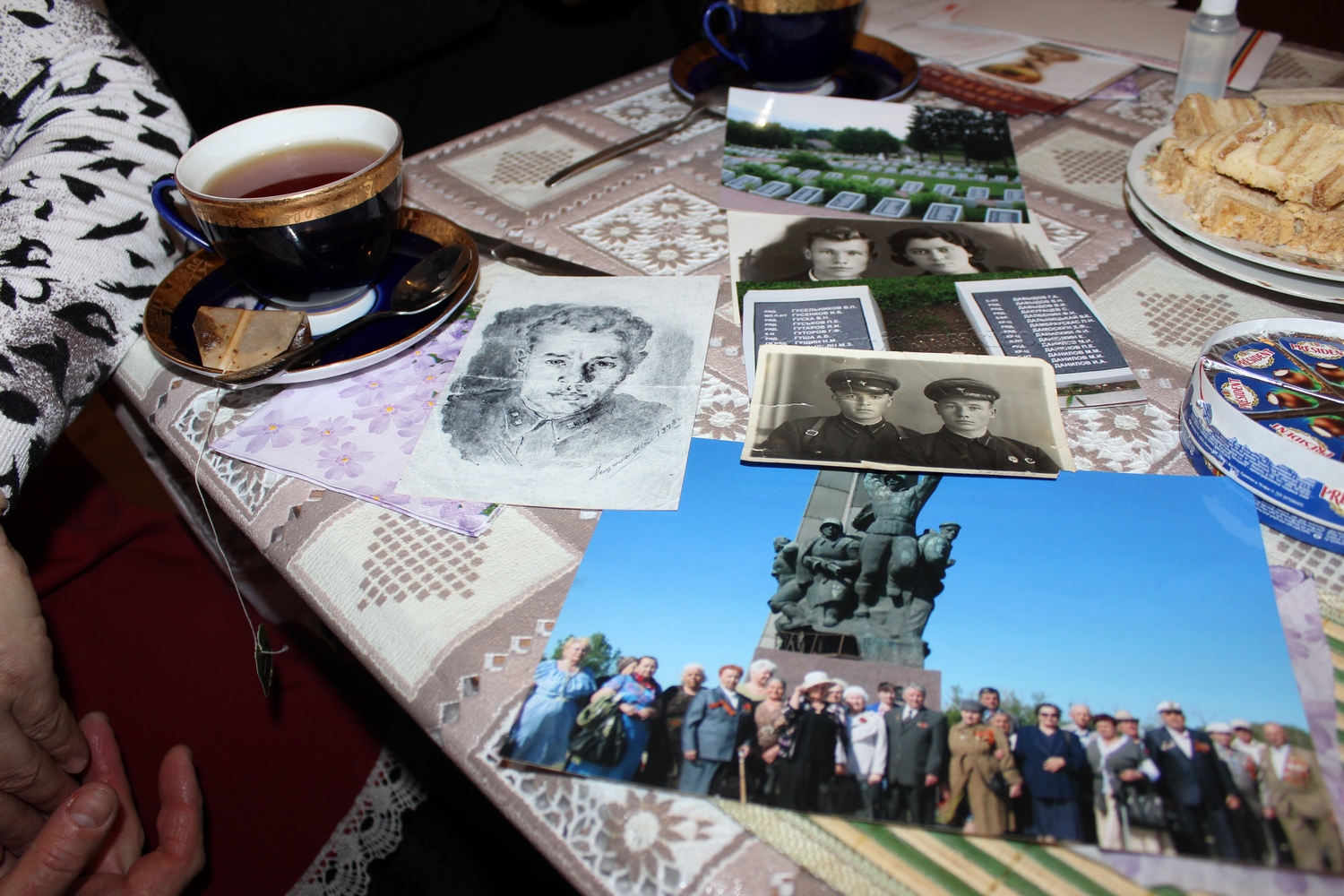 В свою очередь нам было устроено чаепитие. Нина Леонидовна вспоминала о блокадном Ленинграде, а Нина Федоровна показала нам фотографии военного времени, рассказала интересную историю о том, как она искала место захоронения своего брата, как больно ей было услышать, что брат ее погиб 22 февраля 1945, пройдя всю войну и не дожив до Победы 3 месяца.