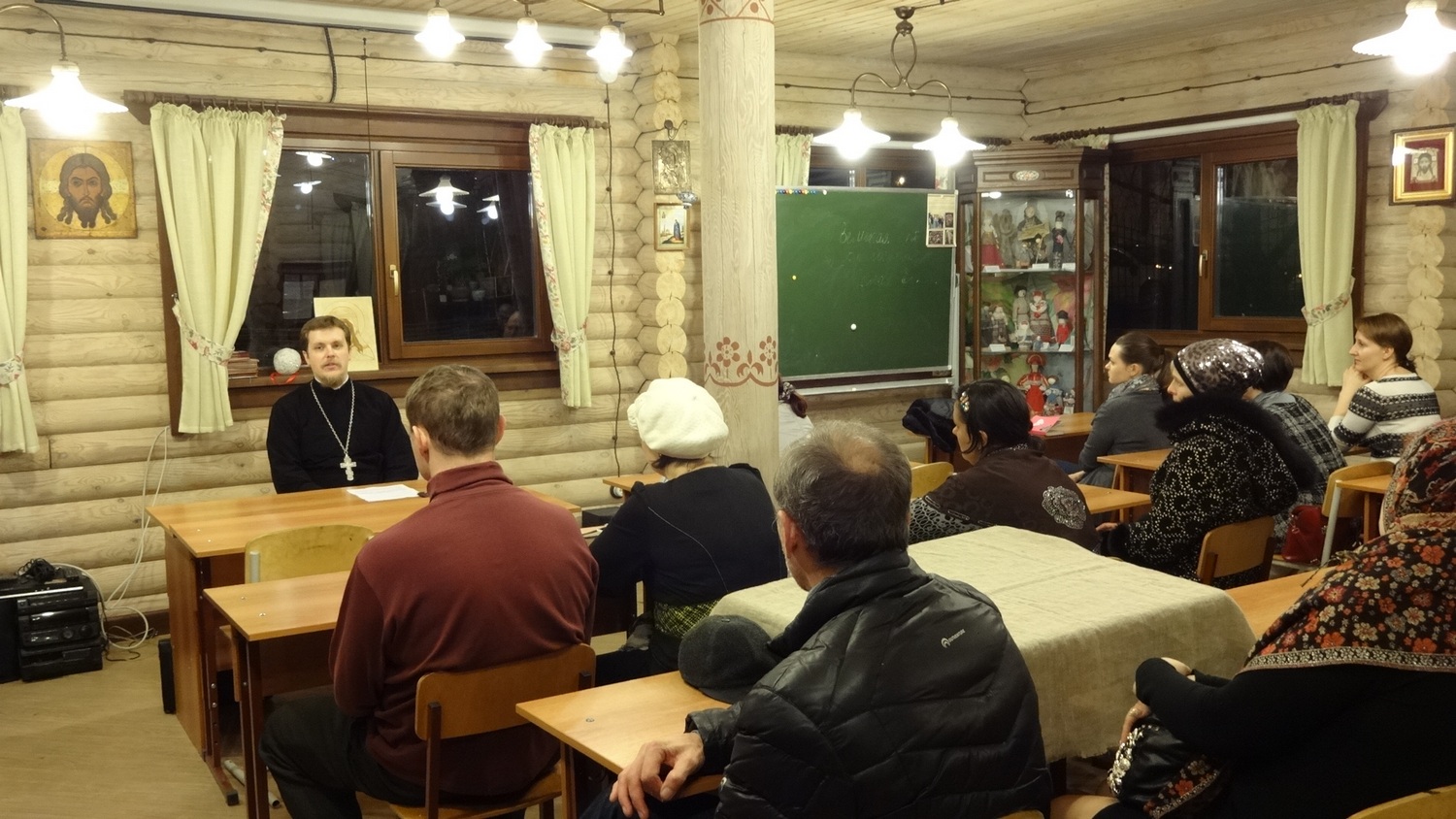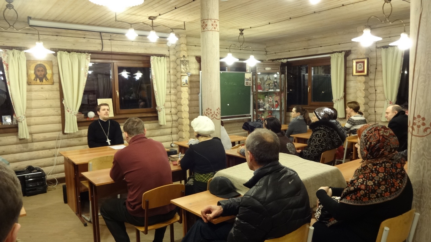 14 февраля 2015 года в воскресной школе прихода святого Георгия Победоносца состоялось второе занятие из цикла просветительских бесед об основах православного вероучения, организованных духовенством нашего прихода для родителей учеников воскресной школы.