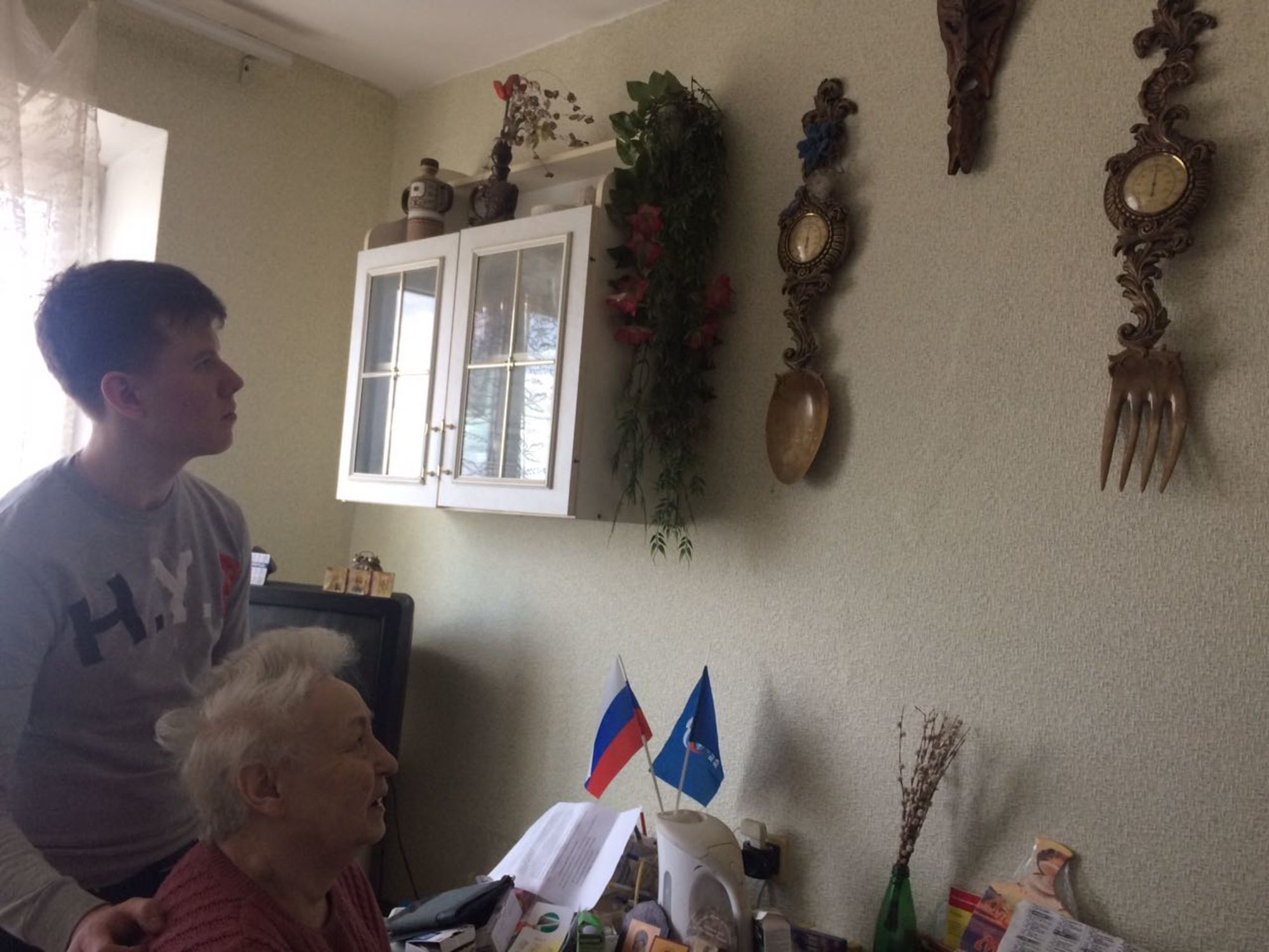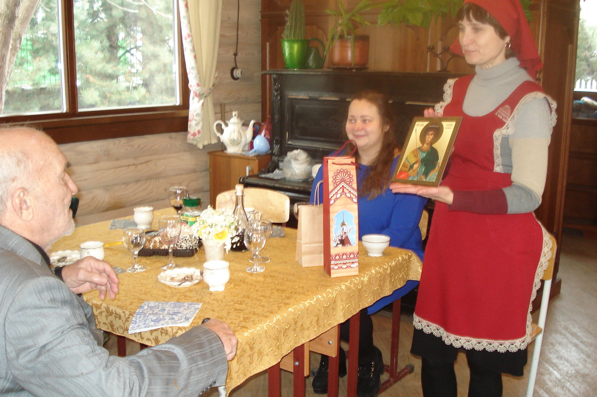 По благословению настоятеля протоиерея Валерия Волощука была проведена экскурсия для ветерана Великой Отечественной войны Петрова Георгия Алексеевича. Ветерану рассказали историю создания Храма, показали строящийся Храм Святого Георгия Победоносца, показали приходские мастерские. Встреча закончилась чаепитием и вручением памятного подарка — иконы Святого Георгия Победоносца, чье имя носит и сам ветеран. В этот день не остались в стороне и ребята нашего молодежного движения. Они посетили и поздравили с праздником нашу дорогую подопечную - Бедину Татьяну Иосифовну, которая рассказала им много интересного о своей деятельности в Совете ветеранов Советского района.