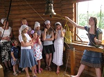 знакомством с техникой написания икон и используемыми в иконописи материалами. В завершение экскурсии София Кобзева продемонстрировала мастер-класс по колокольному звону, предложив и гостям попробовать себя в качестве звонарей.