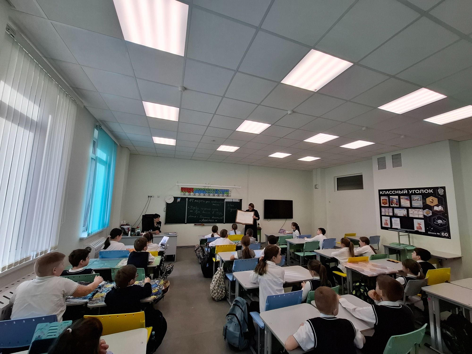 14 марта руководитель приходского экскурсионного проекта «Луч» Ольга Хабибулина и педагог воскресной школы Анна Донских посетили МАОУ «Школа №60», где рассказали обучающимся четвертого класса о первопечатнике диаконе Иване Фёдорове и его трудах по распространению книжного дела. На встрече школьники узнали об истории книгопечатания в России, вкладе первопечатников в развитие русской культуры и образования. Ребята увидели ценные богослужебные книги – Апостол XIX века, Евангелие, рукописный сборник молитв нашим храмовым святым.