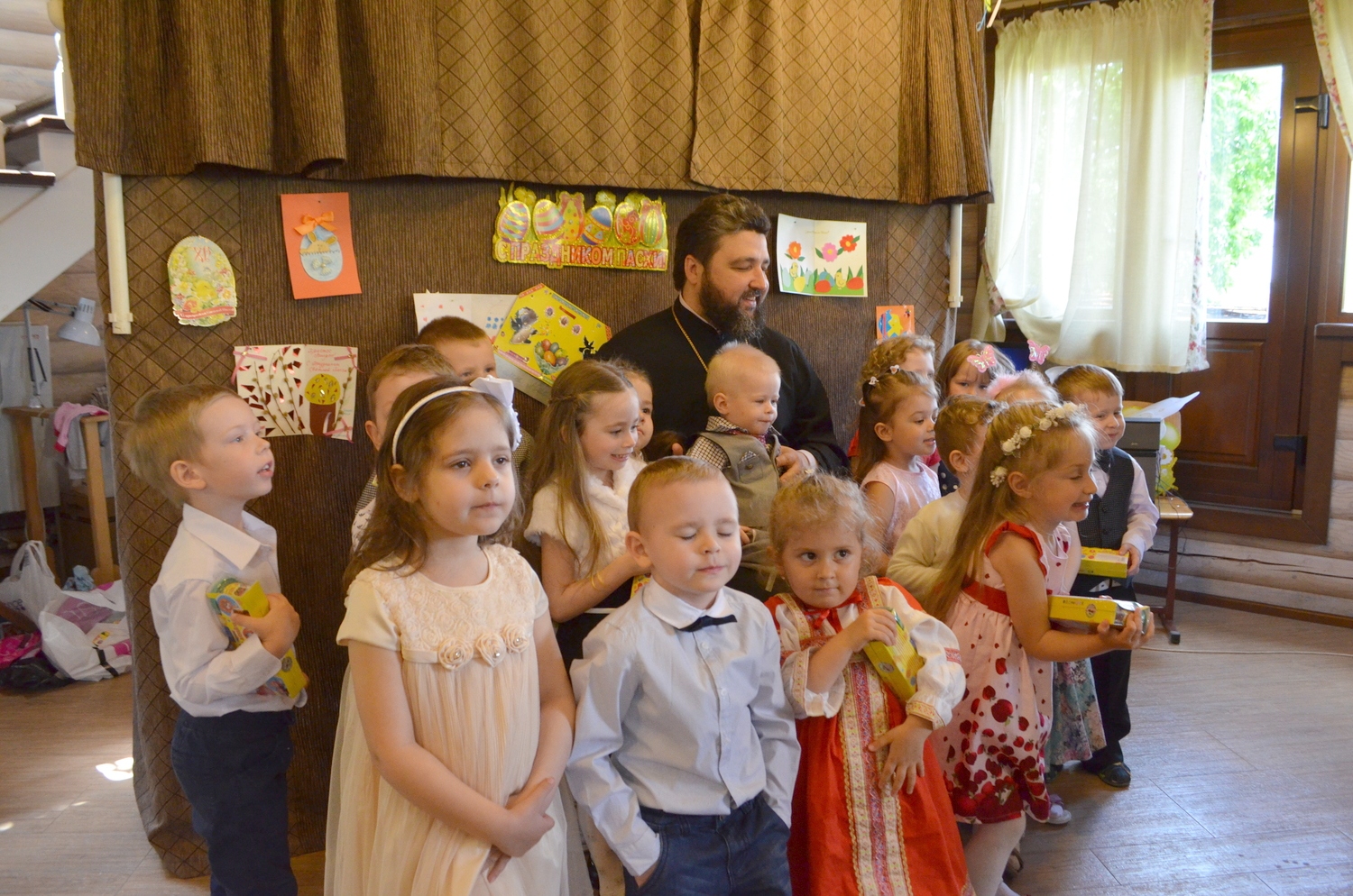 14 мая 2016 года воспитанники Дошкольных групп «Родничок» воскресной школы нашего прихода и их родители, бабушки и дедушки собрались вместе на утренник, чтобы поделиться Пасхальной радостью. Малыши подготовили и прочитали стихи, исполнили песни о празднике. А какой же праздник без игр, шуток и загадок! Кукольный театр «Пуговки» обрадовал дошколят сказкой «Пасхальный теремок». Каждый ребенок получил подарок.
