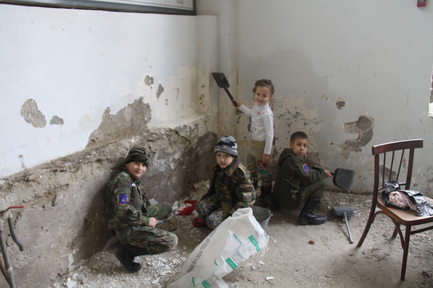 Ростовский Духовно-Патриотический Центр Святого Георгия Победоносца выражает сердечную благодарность Региональному отделению ДОСААФ России Ростовской области и лично председателю отделения Герою Российской Федерации генерал-майору Красникову Александру Алексеевичу за выделенное под спортзал помещение. 14 ноября 2015 года представители Духовно-Патриотического Центра совместно с учащимися и родителями приходской воскресной школы храма Иоанна Воина прихода Святого Георгия Победоносца организовали уборку будущего спортзала. После уборки участники субботника ели настоящую солдатскую кашу, приготовленную на костре, и пили чай из походного самовара. Вместе со всеми в мероприятии приняла участие директор воскресной школы Ксения Валериевна Волощук.