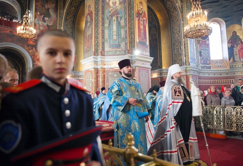 Божественную литургию в главном храме казачества – Патриаршем войсковом всеказачьем соборе Вознесения Господня — возглавил митрополит Ростовский и Новочеркасский Меркурий, Глава Донской митрополии. Праздник Покрова Божией Матери – это престольный день криптового (нижнего) храма Вознесенского собора.
