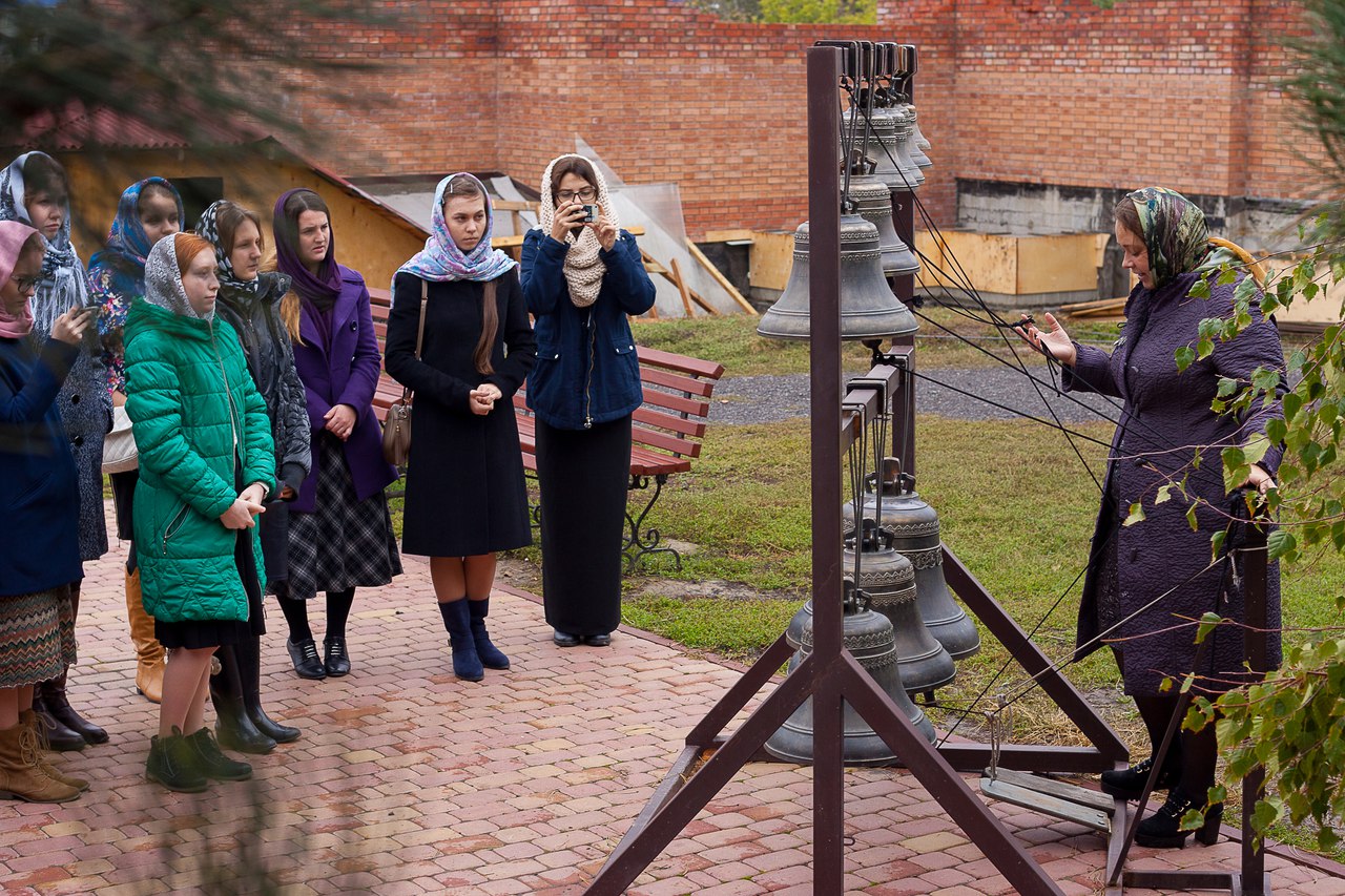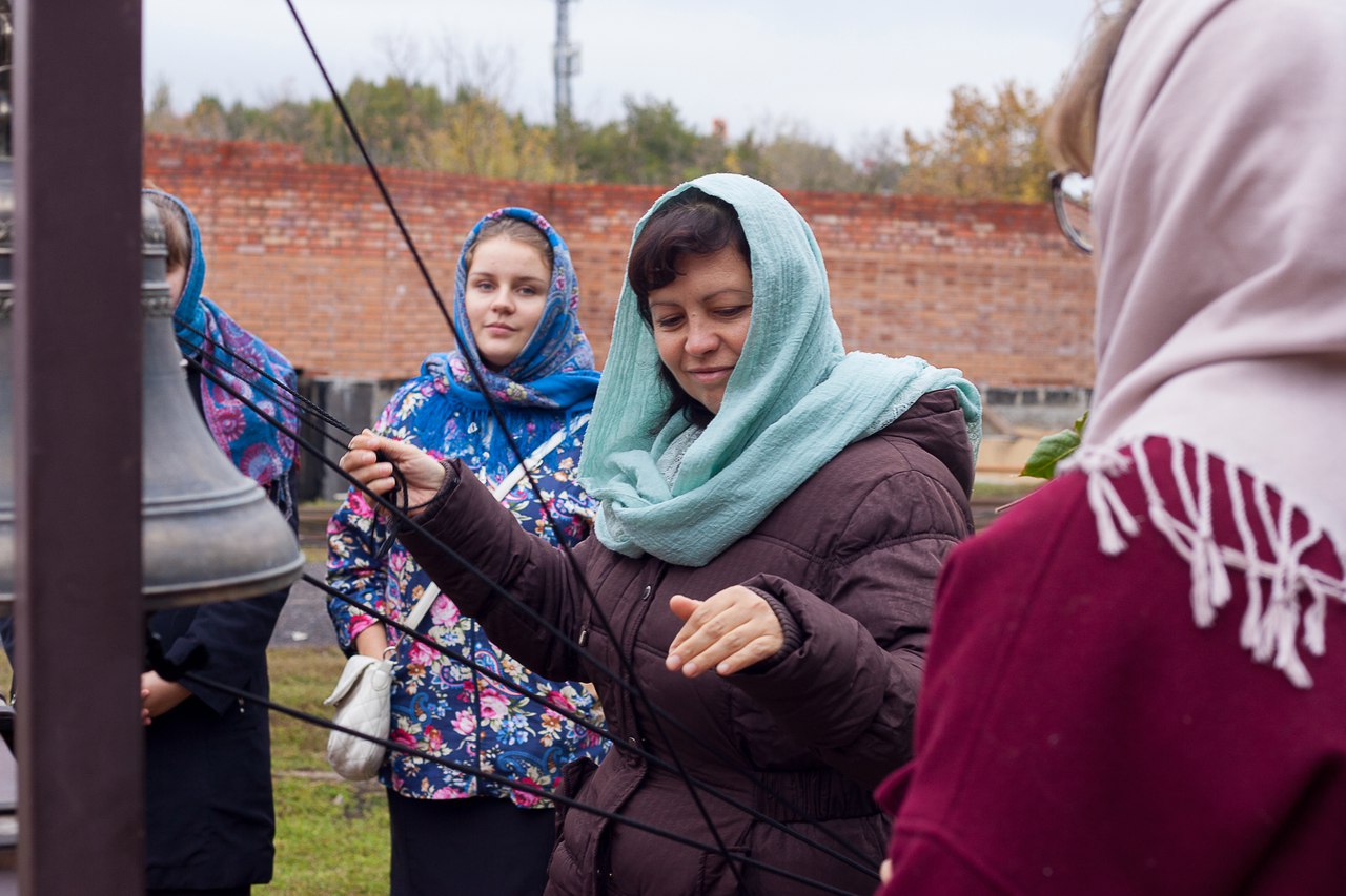Экскурсия началась с посещения храма св. Иоанна Воина, где все смогли приложиться к иконам и мощам святых. После этого девушки со своими преподавателями дружно отправились на звонницу, и по окончании небольшого мастер-класса, который показала Ольга Павловна, каждый смог попробовать себя в роли звонаря.