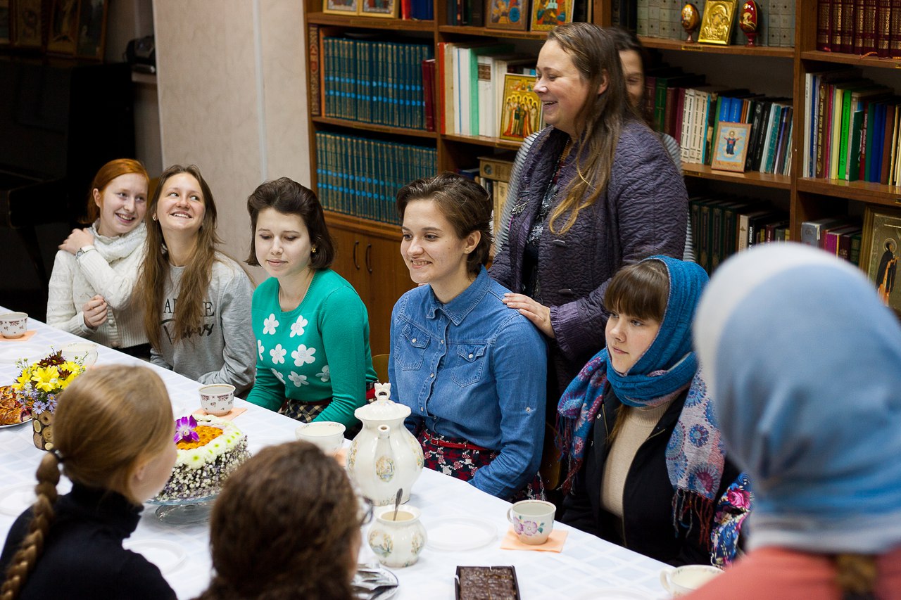 Экскурсия закончилась веселым чаепитием с поздравлением именинницы, походом на самую высокую точку прихода св. Георгия Победоносца – колокольню и общим фотографированием.