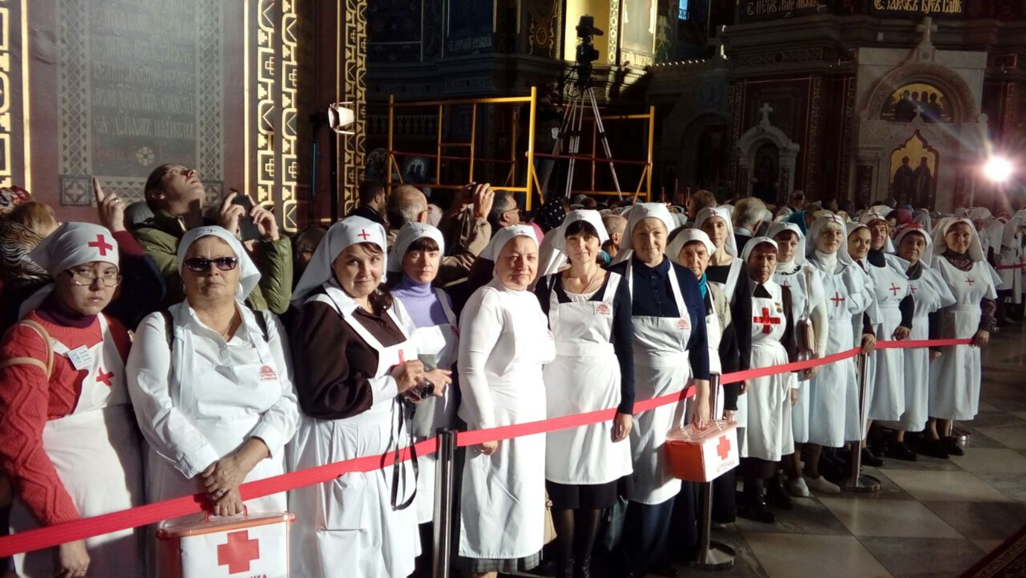 Более 100 сестер милосердия молились на этой литургии и несли послушания: присматривали за подсвечниками, оказывали медицинскую помощь тем, кто в ней нуждался. По завершении Божественной литургии у стен Патриаршего Вознесенского собора состоялся парад Всевеликого войска Донского и традиционный губернаторский смотр кадетских корпусов.