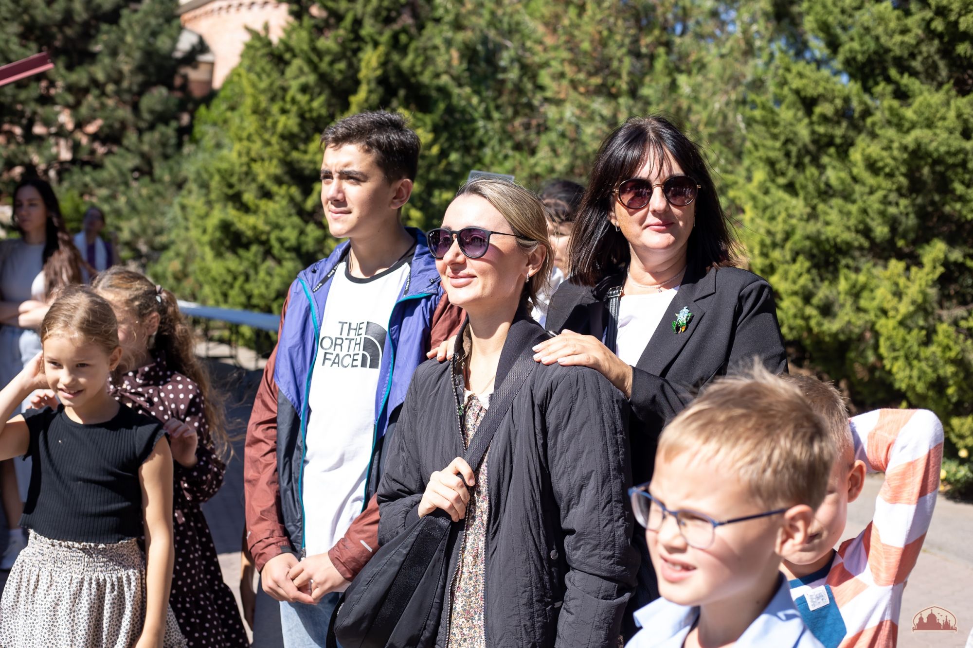Торжества начались с соборной молитвы за Божественной литургией, где вместе молились учащие, учащиеся и их родители. После службы праздник продолжился на подворье храма. Настоятель прихода и духовник воскресной школы протоиерей Валерий Волощук совершил молитву святым покровителям школы — равноапостольным Кириллу и Мефодию, учителям Словенским.