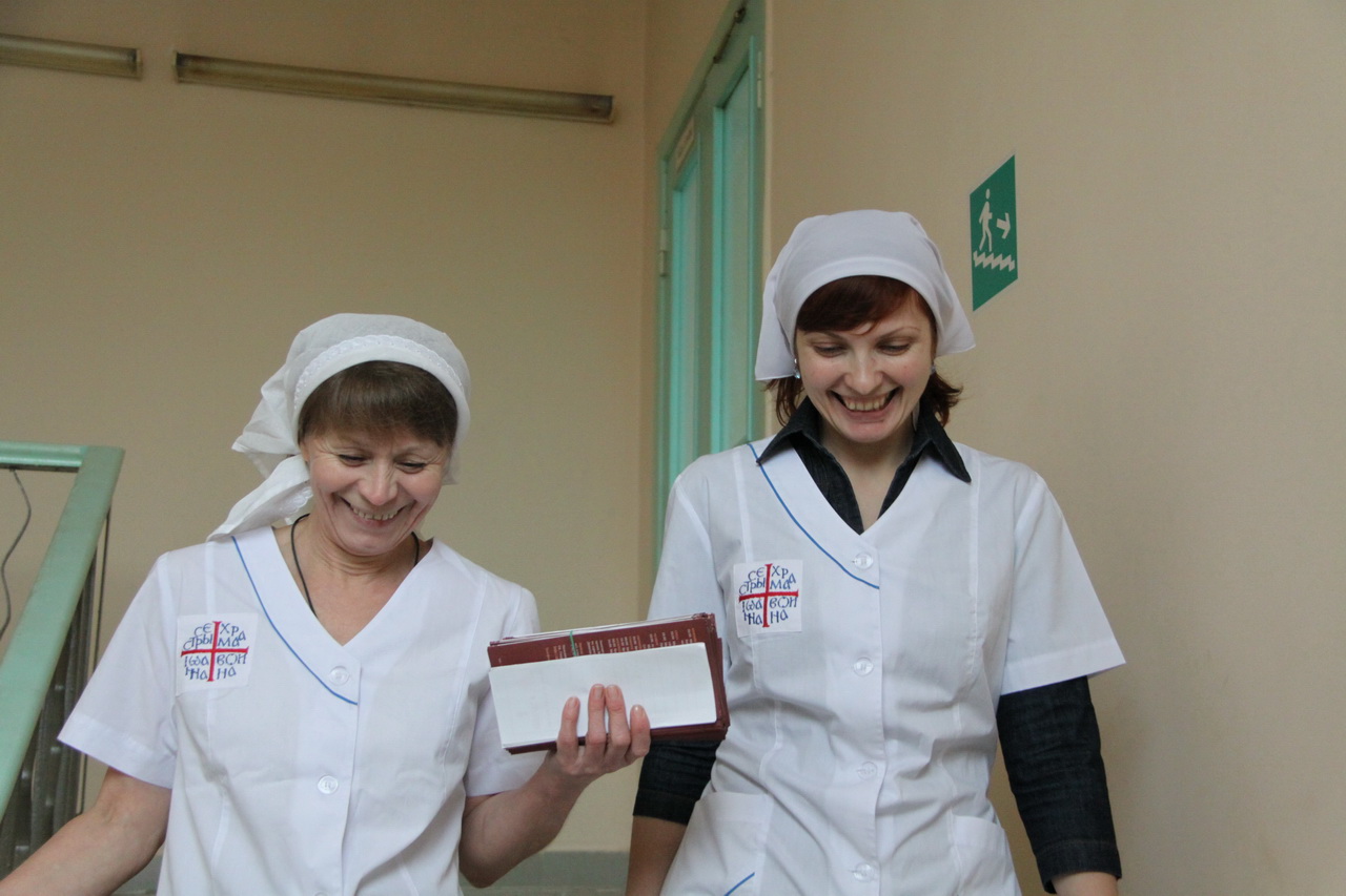 14 января 2012 г. в Ростове-на-Дону Сестричество прихода святого мученика Георгия Победоносца, по благословению настоятеля прихода, в очередной раз посетили кардиоцентр Областной Клинической Больницы. Сестры милосердия нашего храма поздравили медперсонал и болящих людей с праздником Рождества Христова. Совершая свое служение в больнице, сестры помогают людям в подготовке к Церковным Таинствам, проводят духовно-просветительскую работу, а также в рамках благотворительной акции раздают святое масло, иконы, молитвословы, крестики.