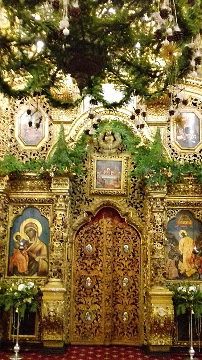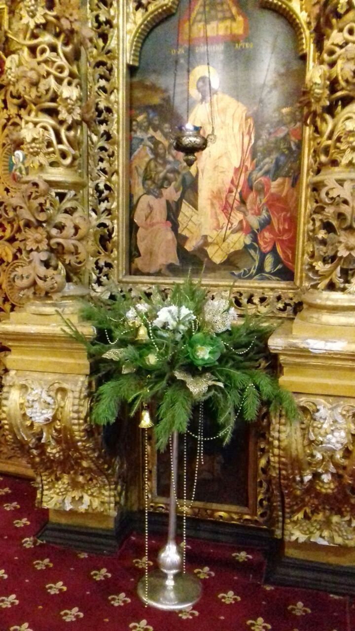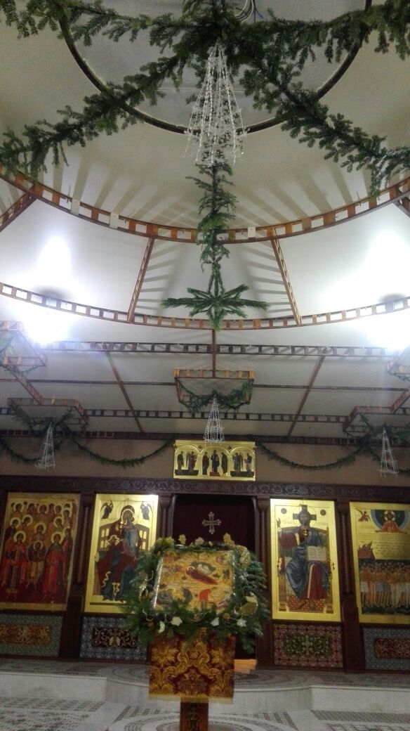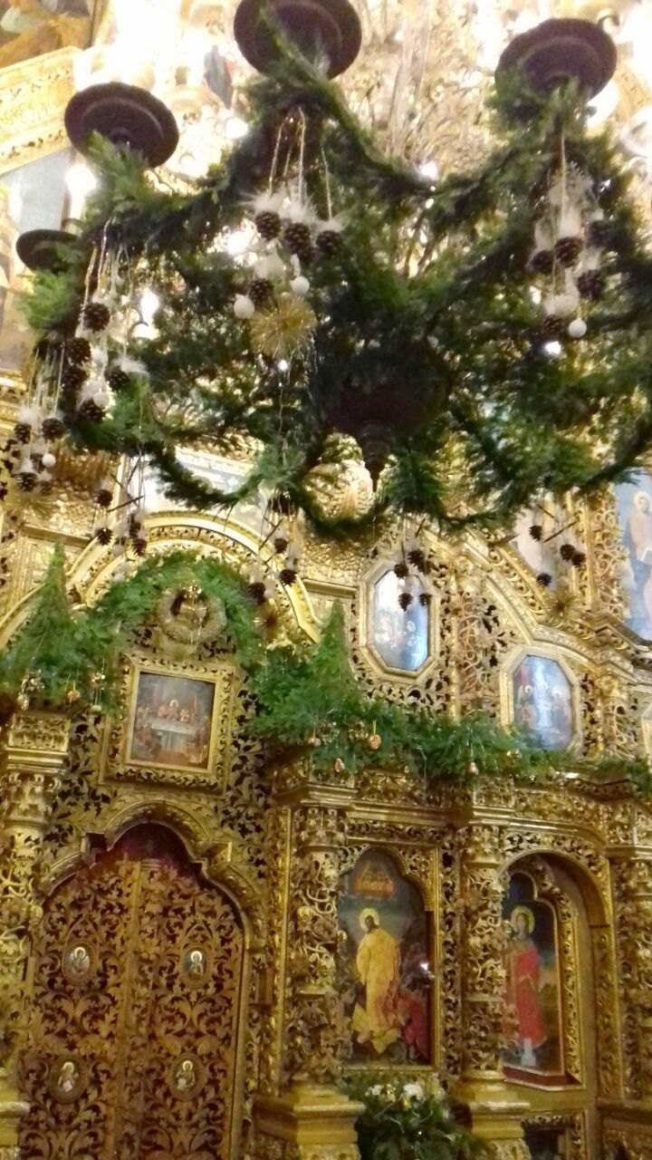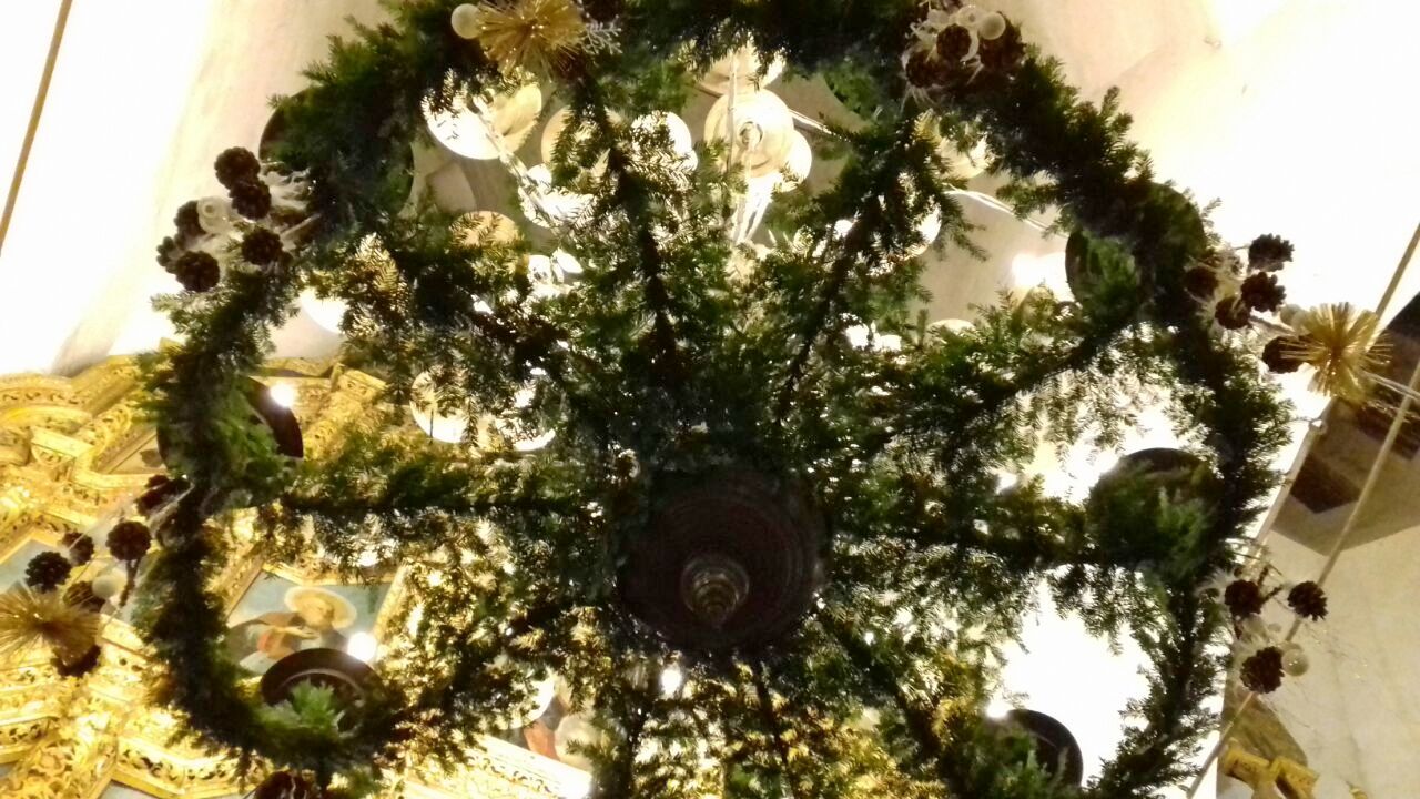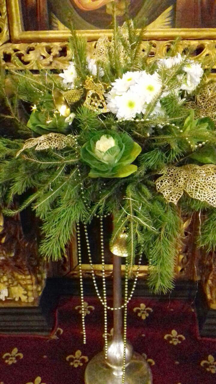 Храмовая мастерская флористики и дизайна благодарит учеников, прихожан, участников молодежного движения и всех, кто принимал участие в подготовке украшения храмов к Рождеству Христову, за неоценимую помощь. В оформлении были использованы: хвоя пихты кавказской, шишки сосны крымской, лоза виноградная, мох, яблоки. мандарины, фигурки из парафина и соленого теста, ангелы из бумаги и ткани, ростовые ангелы. Идея Храмовой мастерской флористики и дизайна.