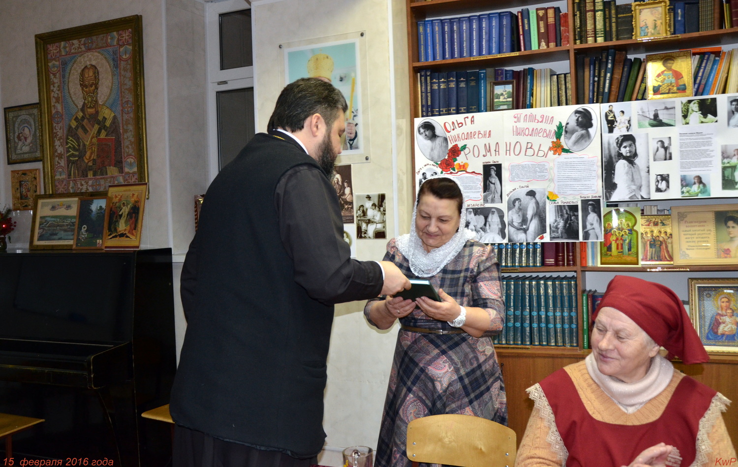 Также в этот же день, 15 февраля состоялось собрание сестер милосердия Храма Иоанна Воина, на котором были подведены итоги прошлого года и намечены задачи на 2016 год. С праздником Сретения Господня, сестер поздравил духовник и наставник протоиерей Валерий Волощук. В праздник Сретения Господня у наших двух сестер милосердия было день рождения. О.Валерий поздравил их замечательными книгами и пожелал Божией помощи и благодати.